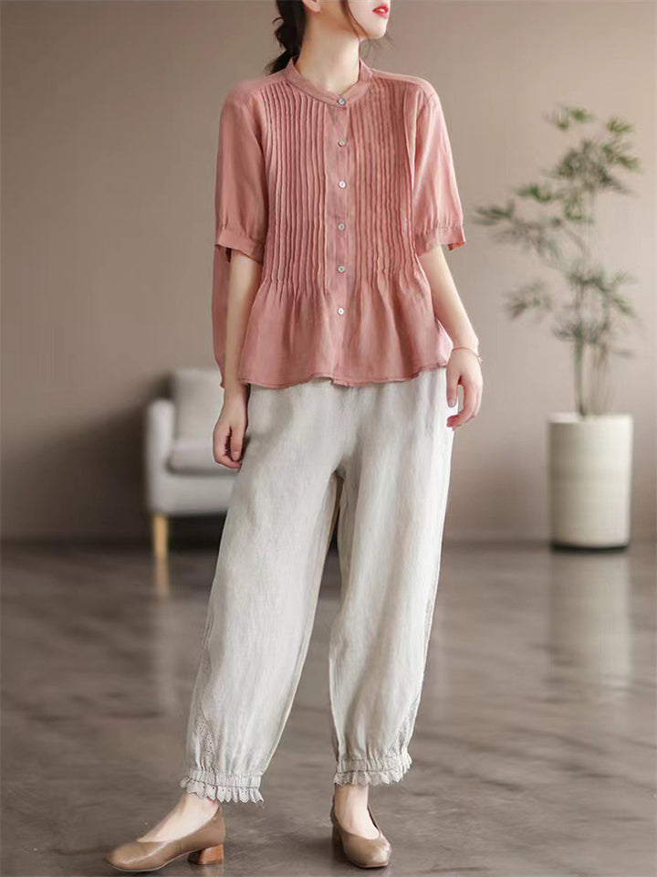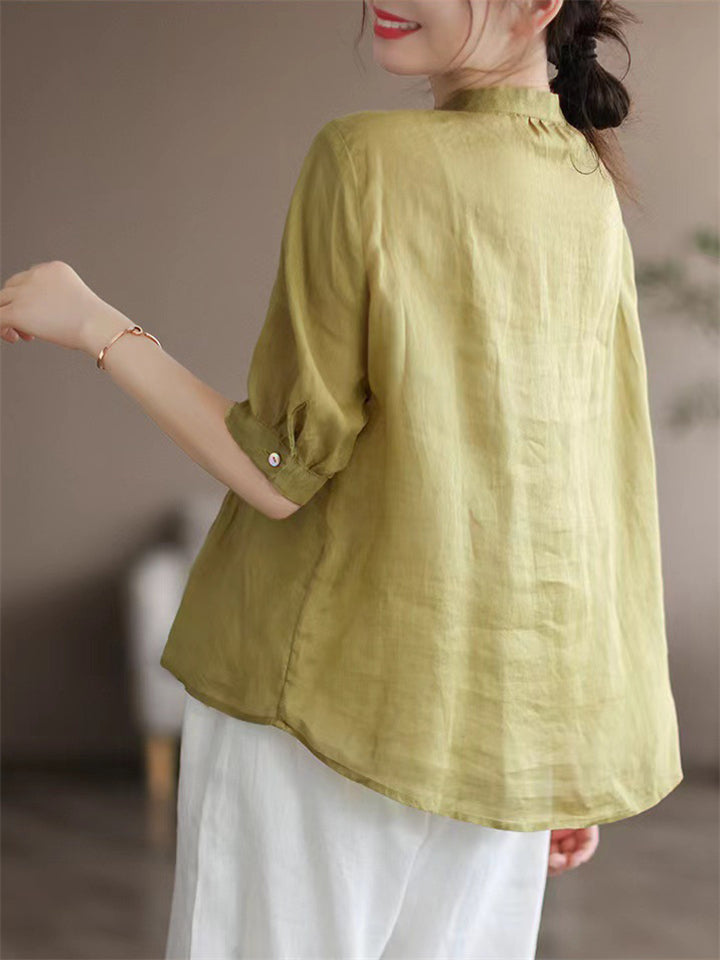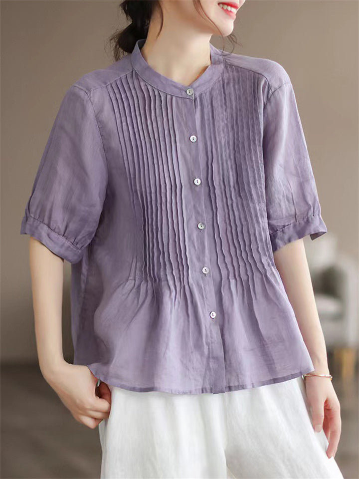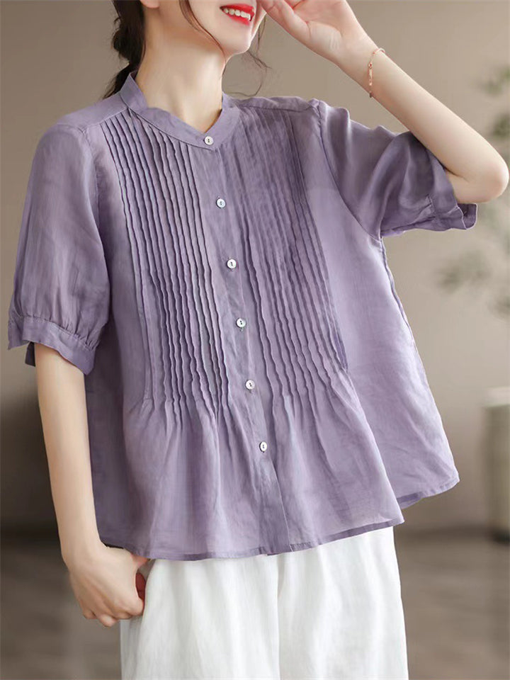 Women's Literary Thin Cotton Linen Short-sleeved Shirts