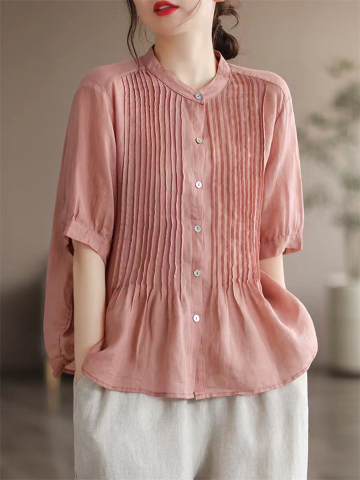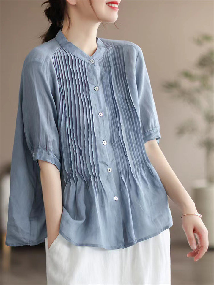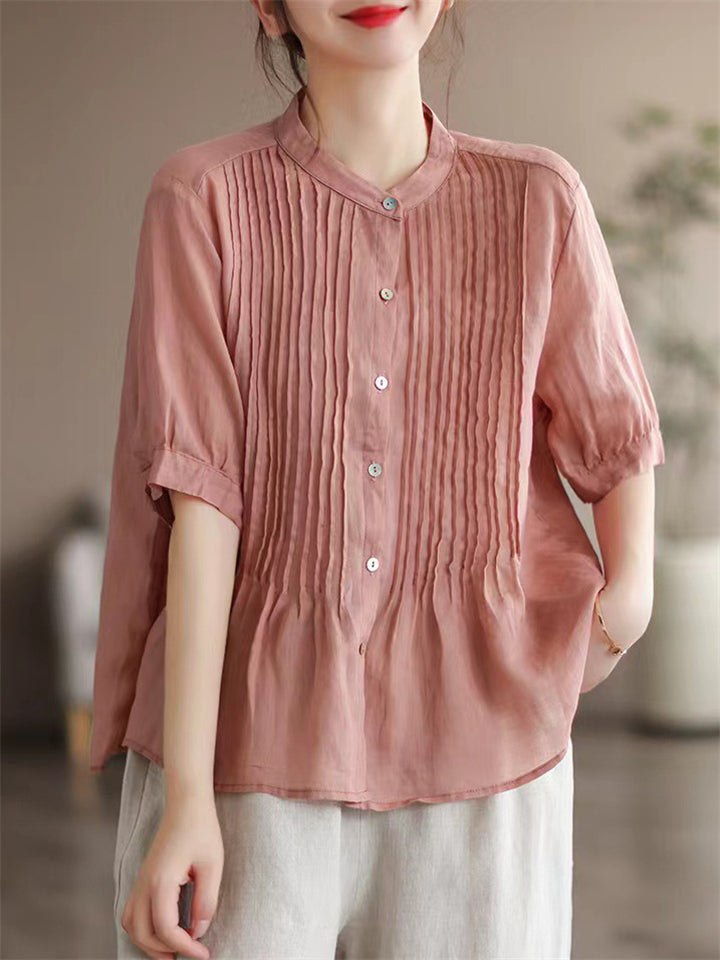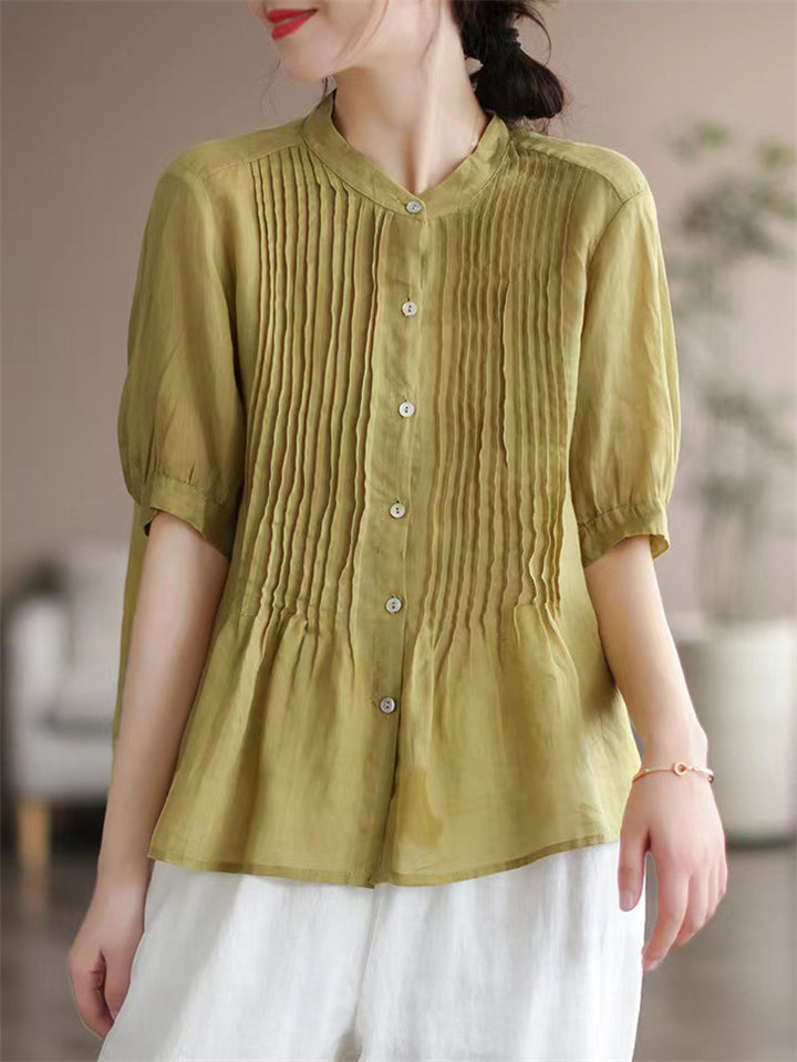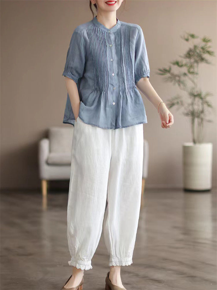 Women's Literary Thin Cotton Linen Short-sleeved Shirts