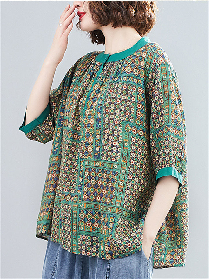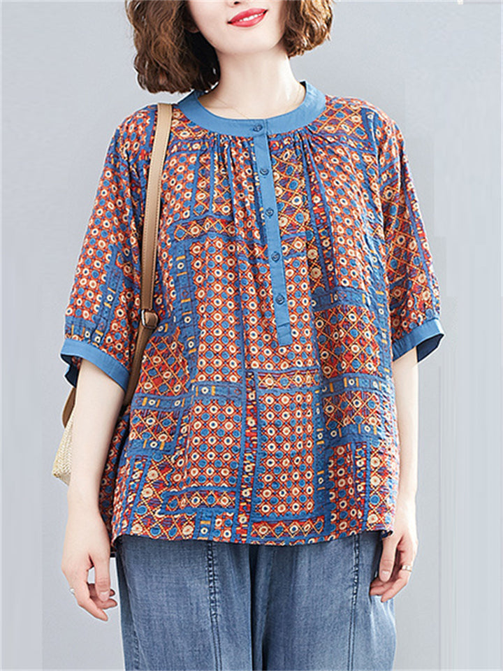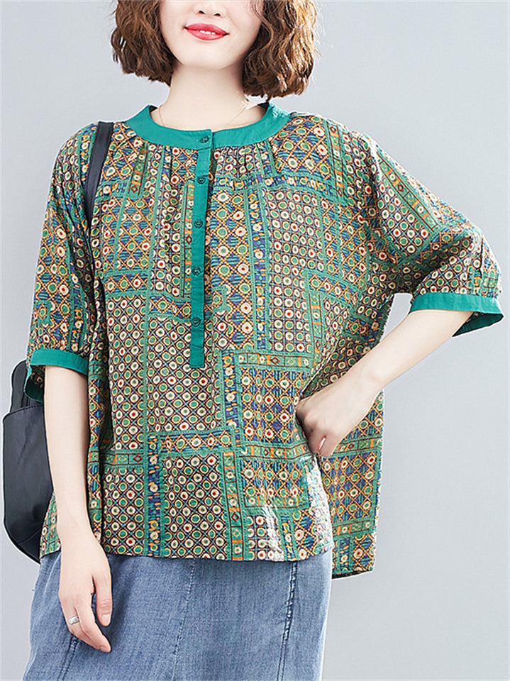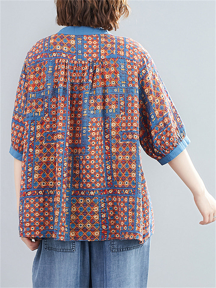 Women's Loose Casual Geometric Print Short Sleeve Shirts