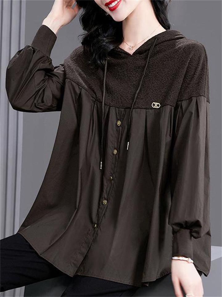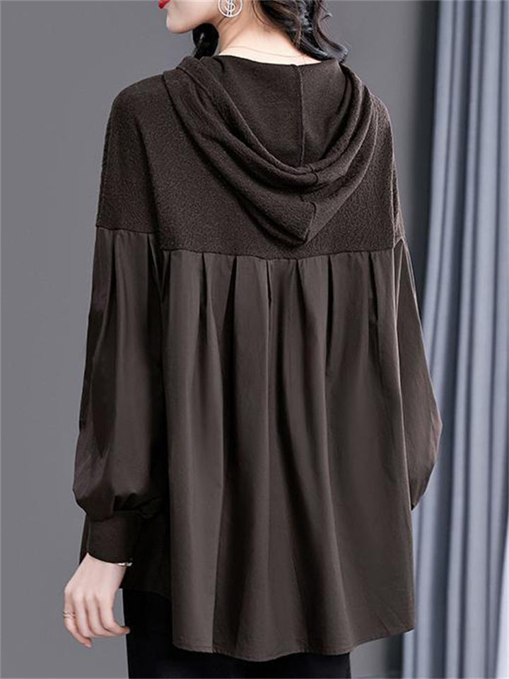 Women's Loose Patchwork Long Sleeve Hoodie Shirts