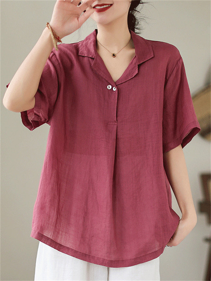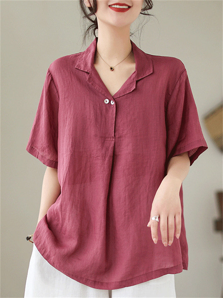 Women's Casual Retro Holiday Style Solid Color V Neck Short Sleeve Shirts