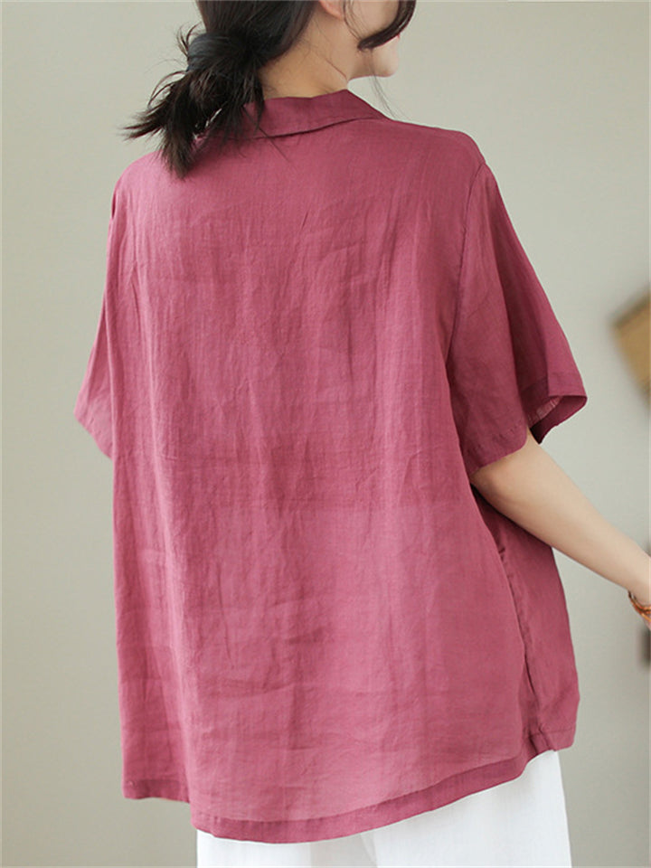 Women's Retro Casual Solid Color Button Up Lapel Cardigan Shirts