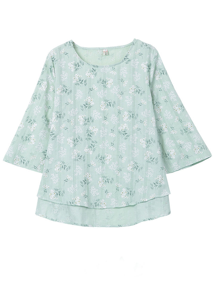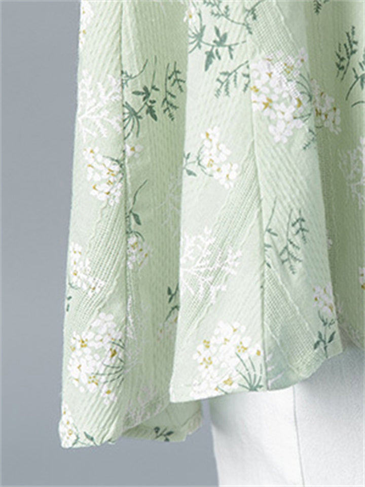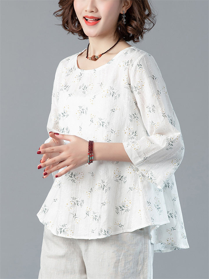 Women's Mini Flower Print 3/4 Sleeve Oversized Shirt