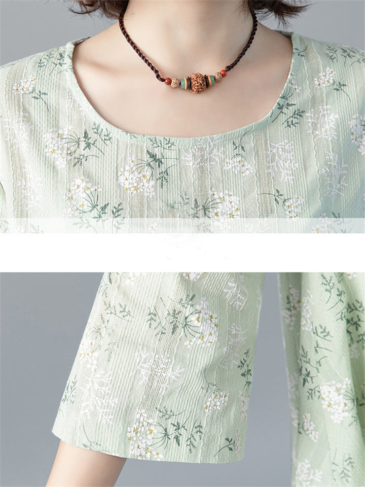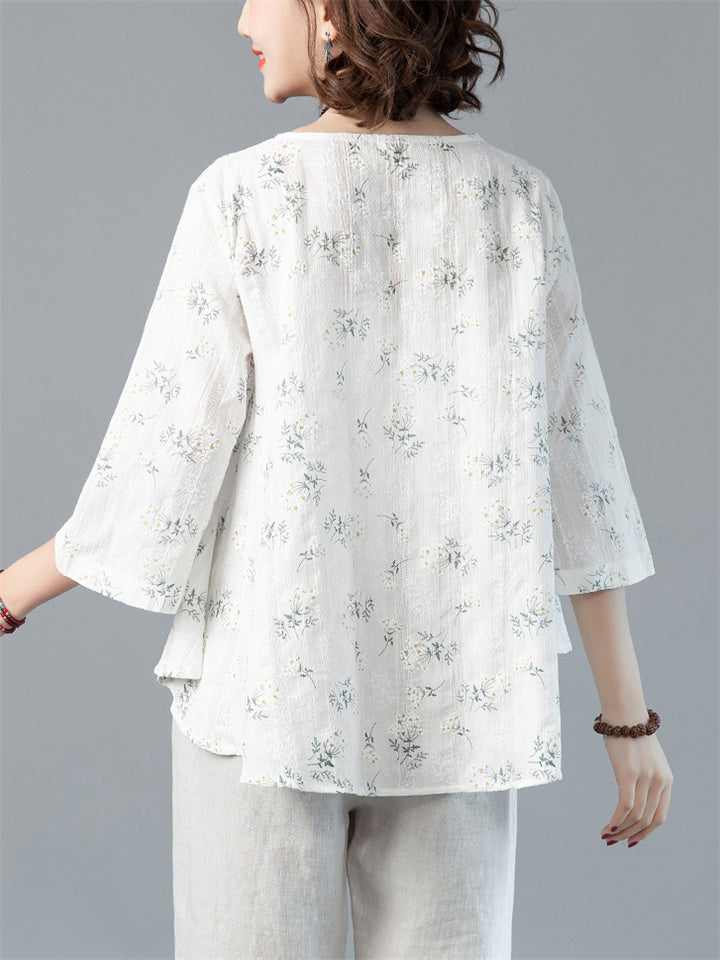 Ancient Chinese Style Floral Embroidery Linen Shirt for Women