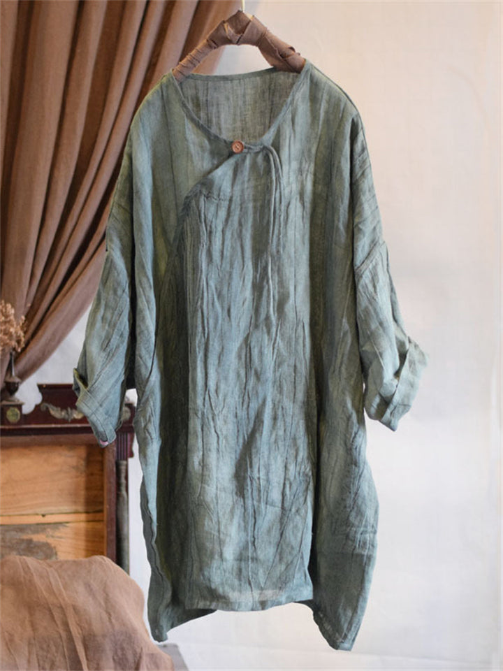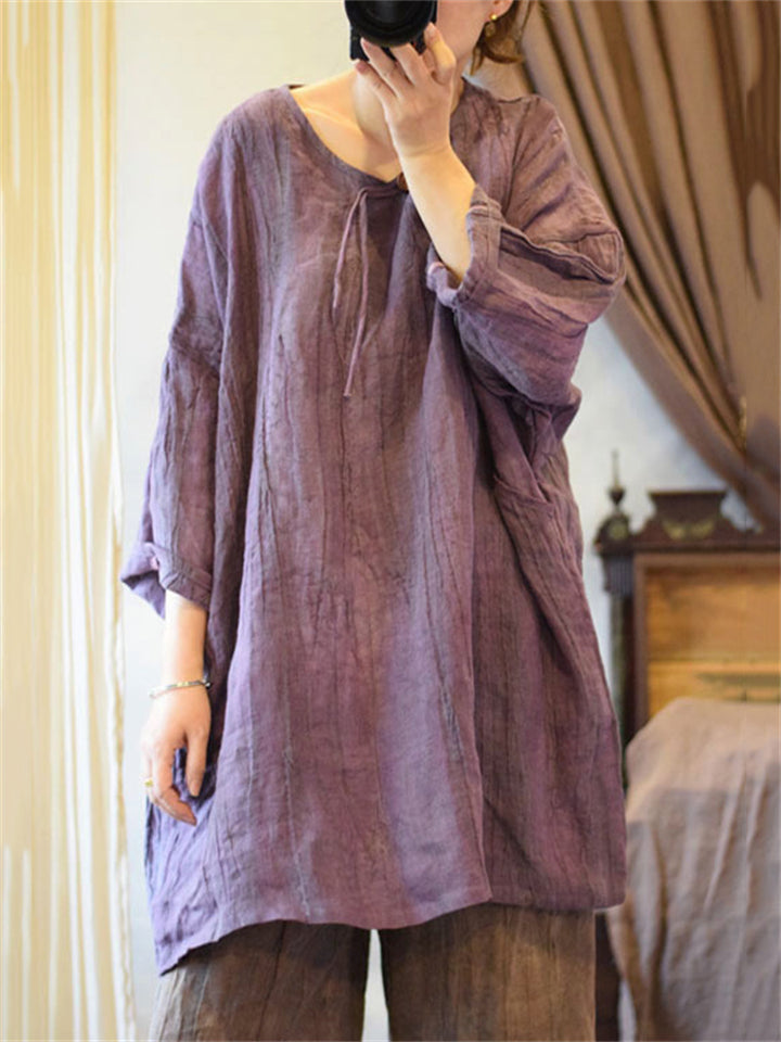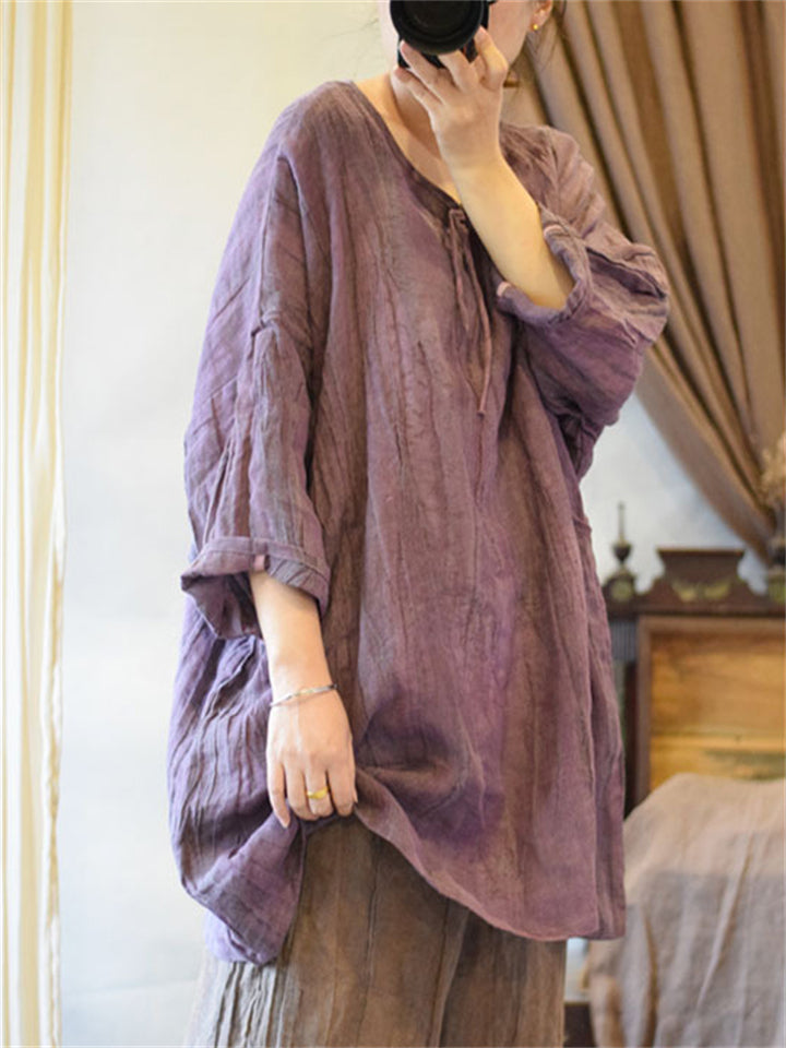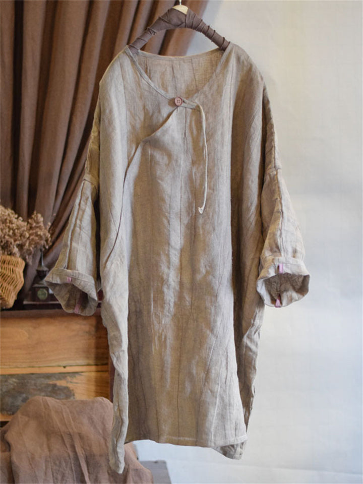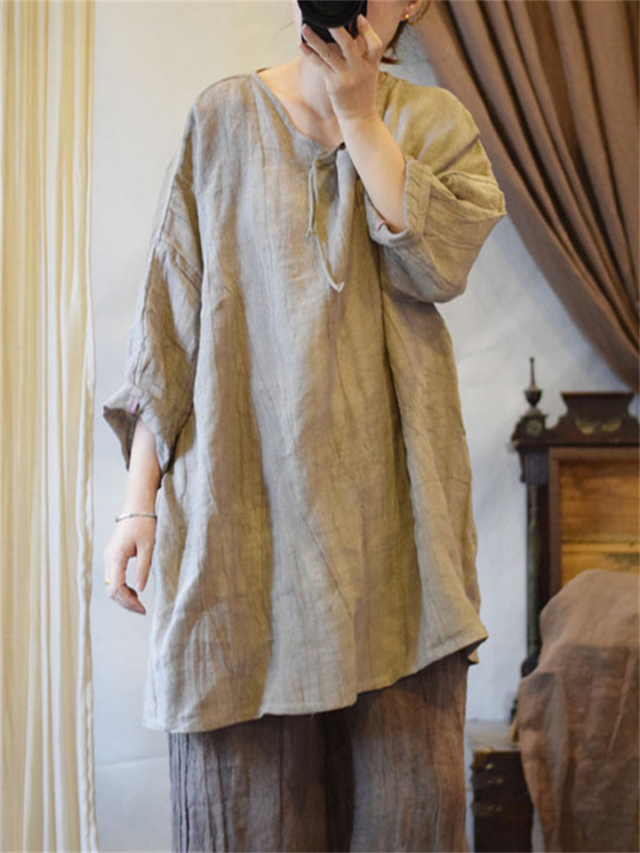 Women's Natural Plain Cotton Linen Baggy Shirts