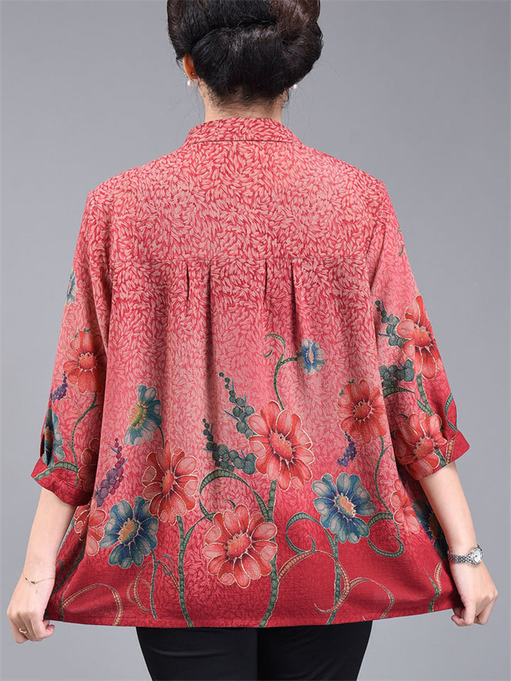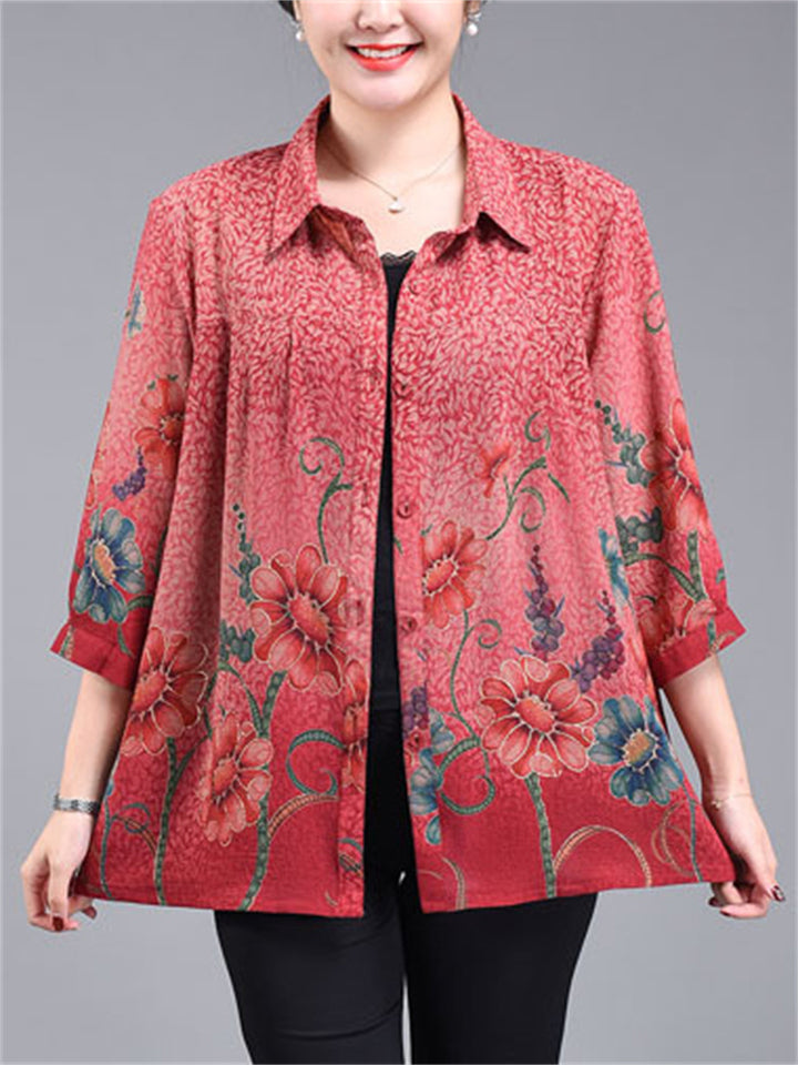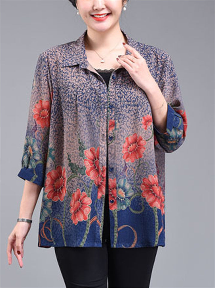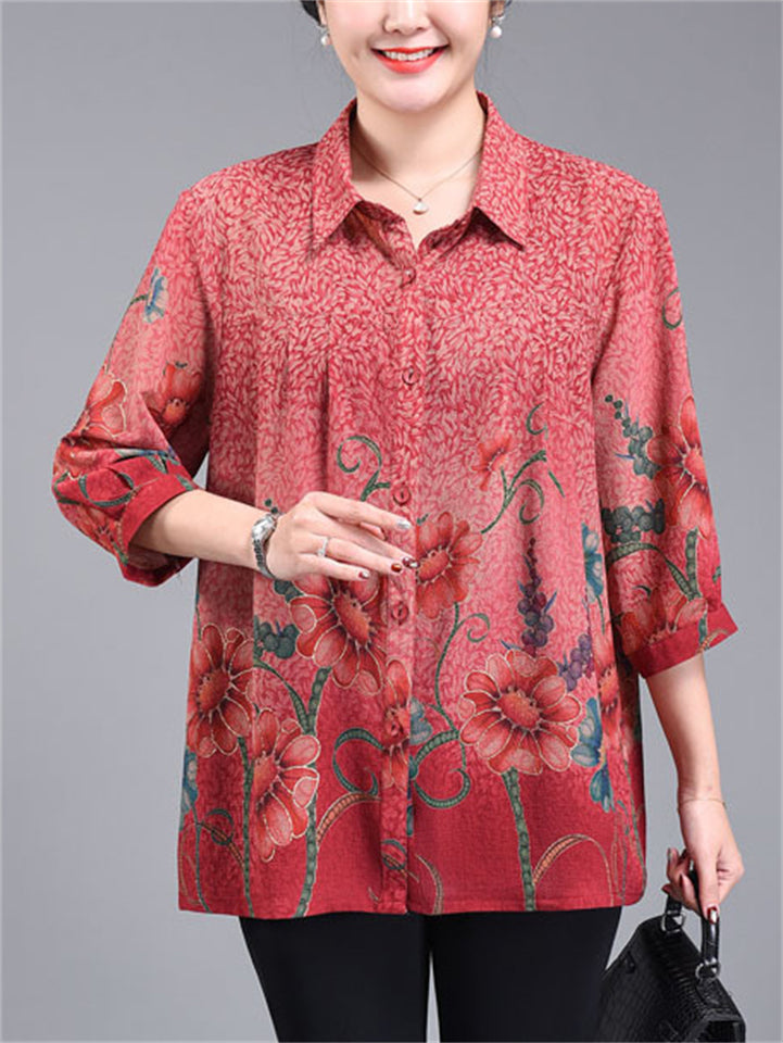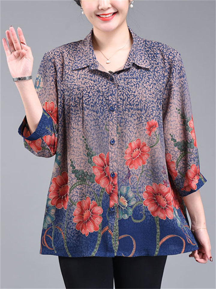 Women's Plus Size Casual Summer Flowers Print 3/4 Sleeve Shirt