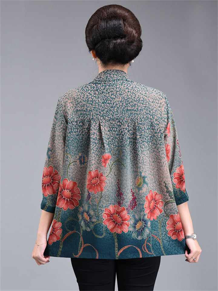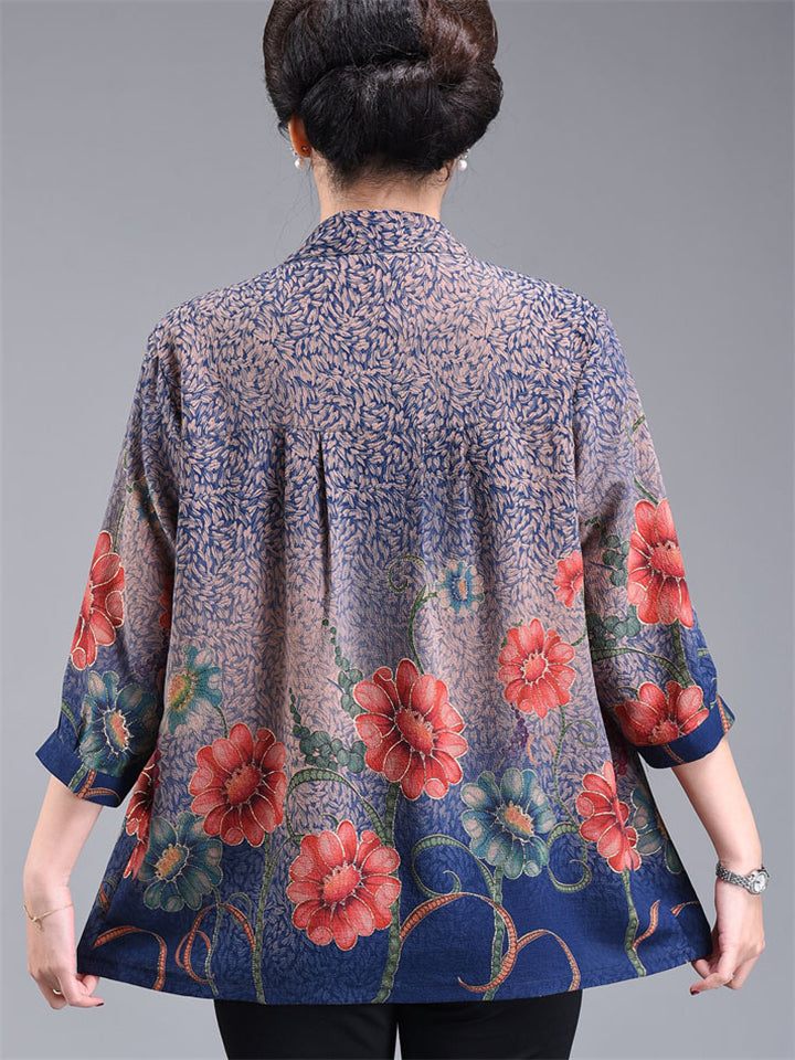 Lady Stand-up Collar Floral Printed Chinese Style Shirts