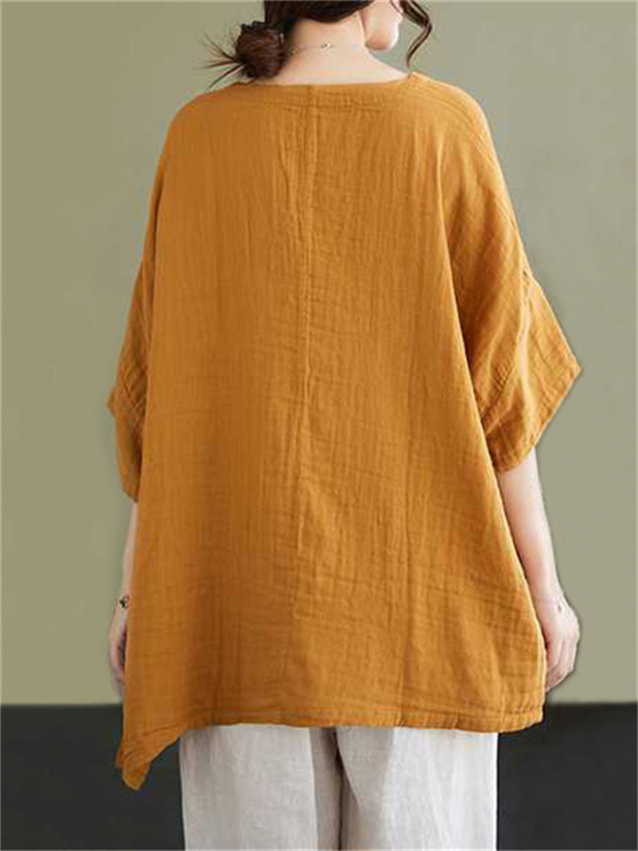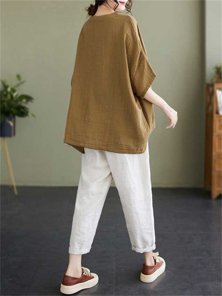 Women's Casual Retro Holiday Style Solid Color V Neck Short Sleeve Shirts
