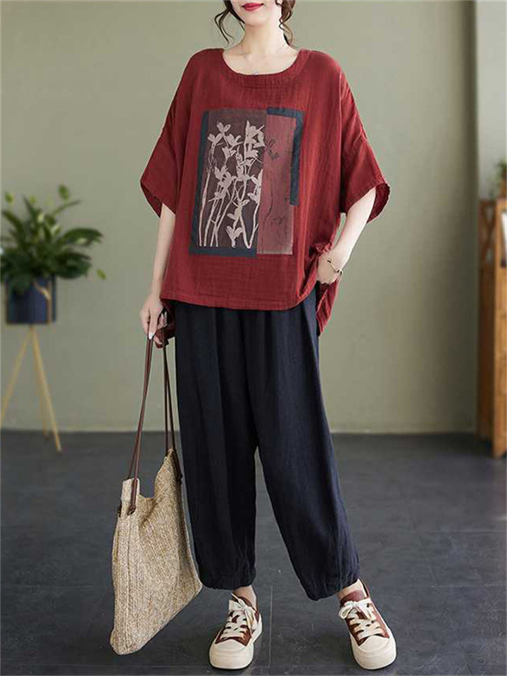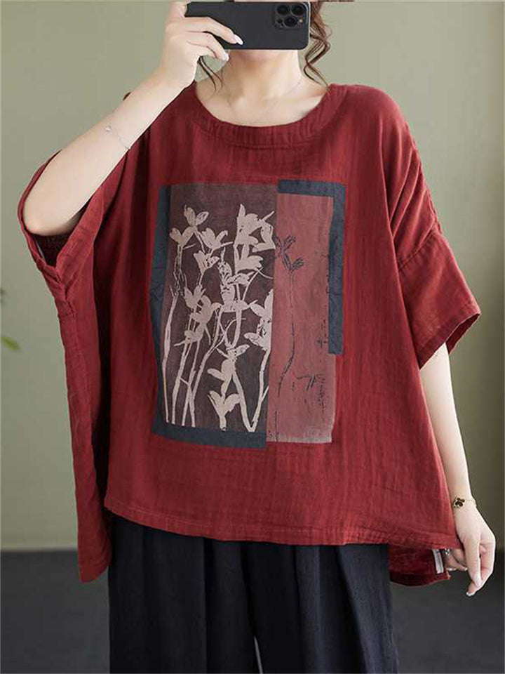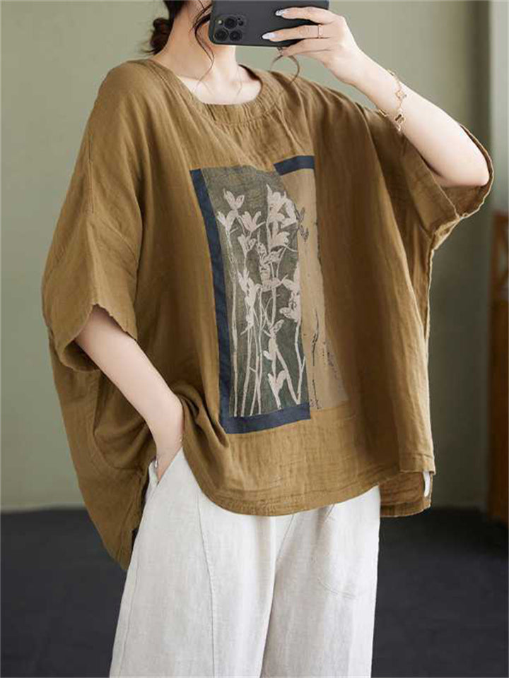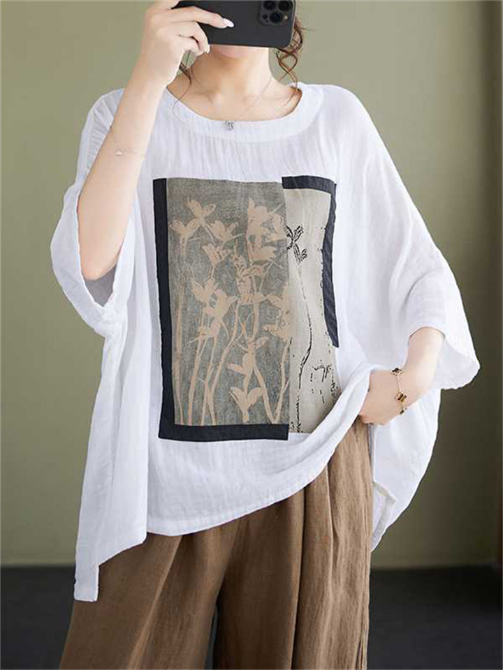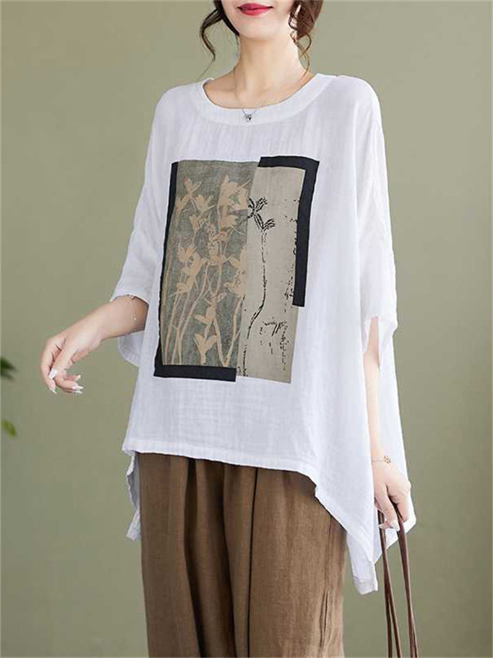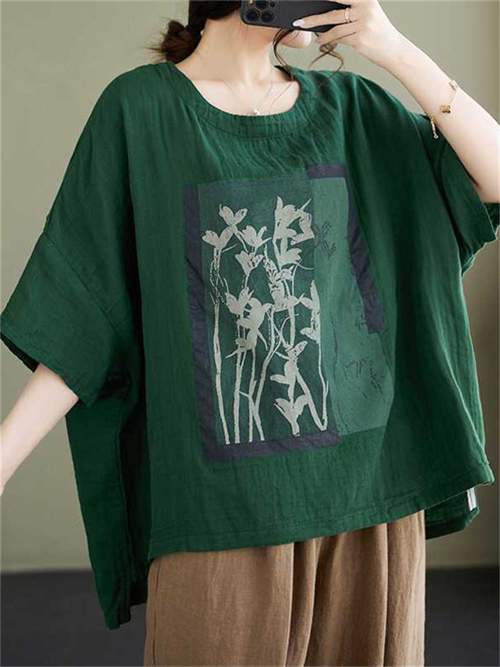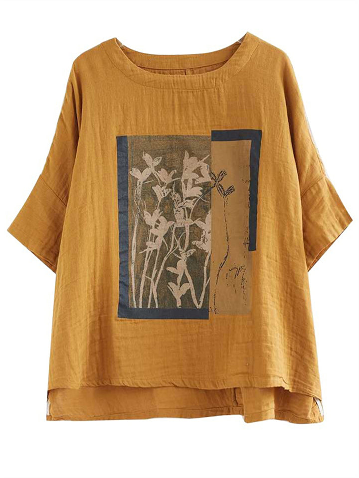 Women's Relaxed Fit Flower Print Round Neck Shirt