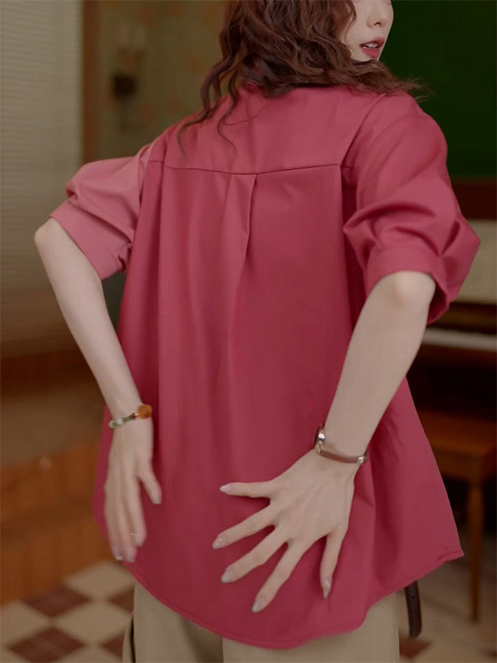 Women's Casual Solid Color Single Breasted Lapel Cardigan Shirts