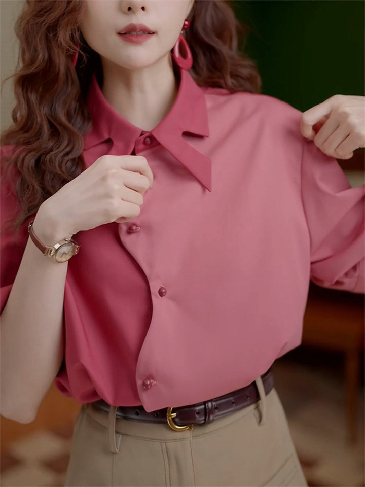 Women's Retro Casual Solid Color Button Up Lapel Cardigan Shirts