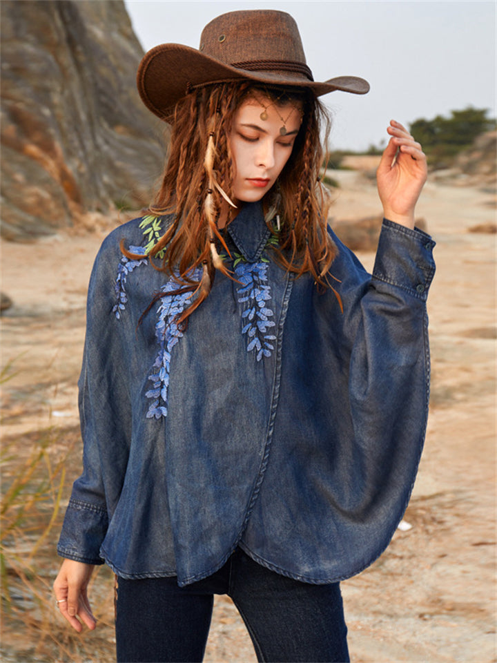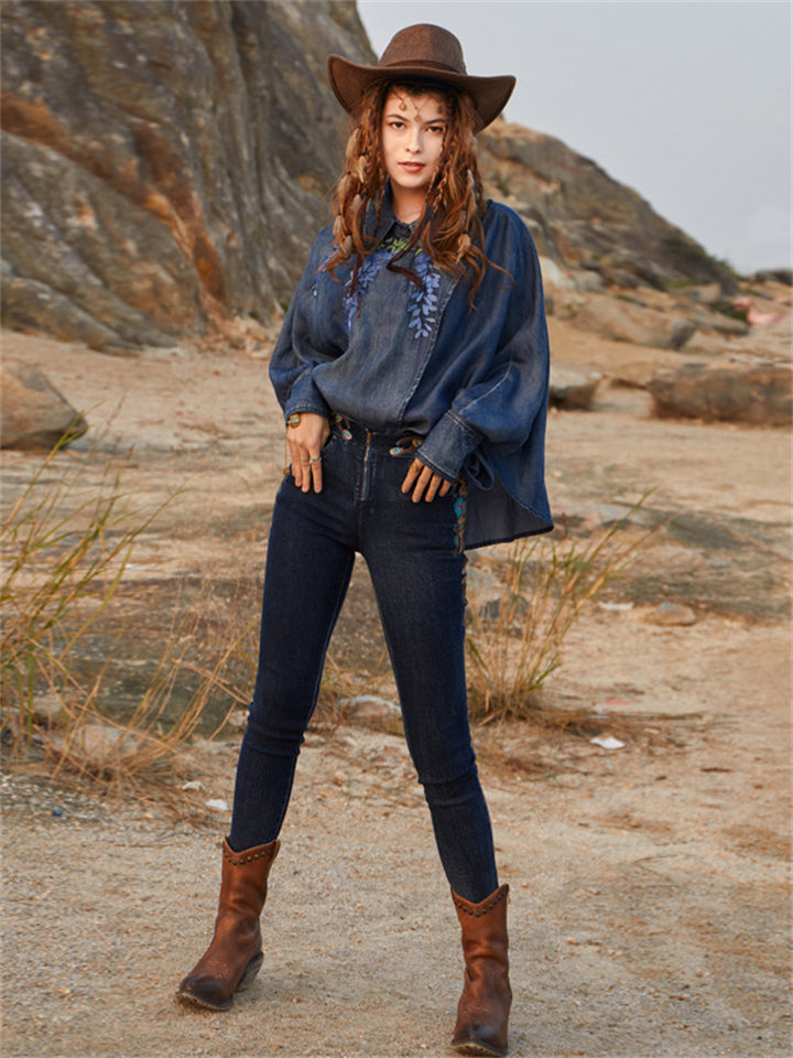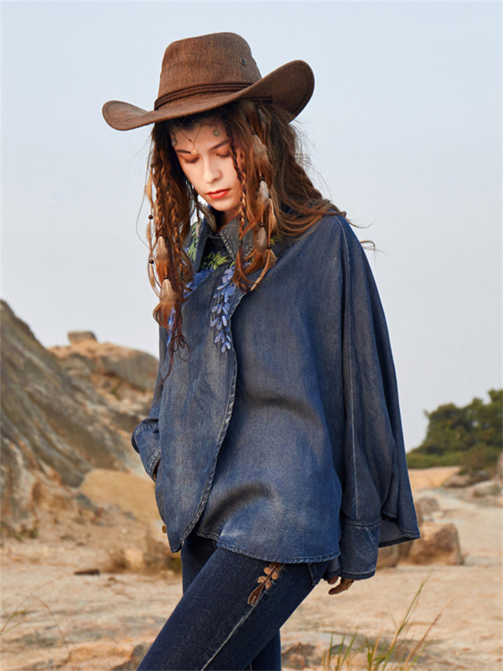 Women's Retro Loose Embroidered Denim Shirts
