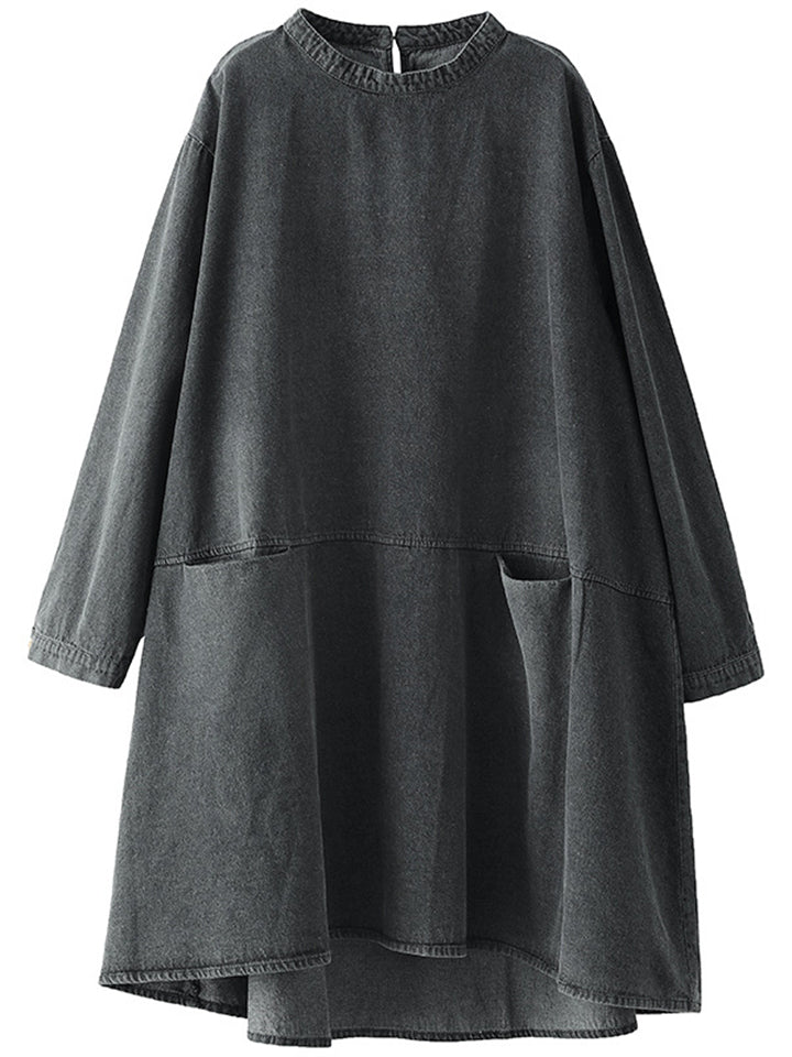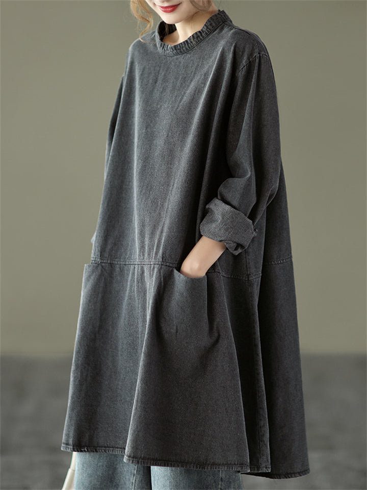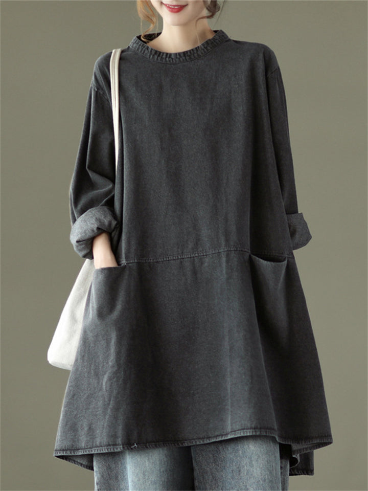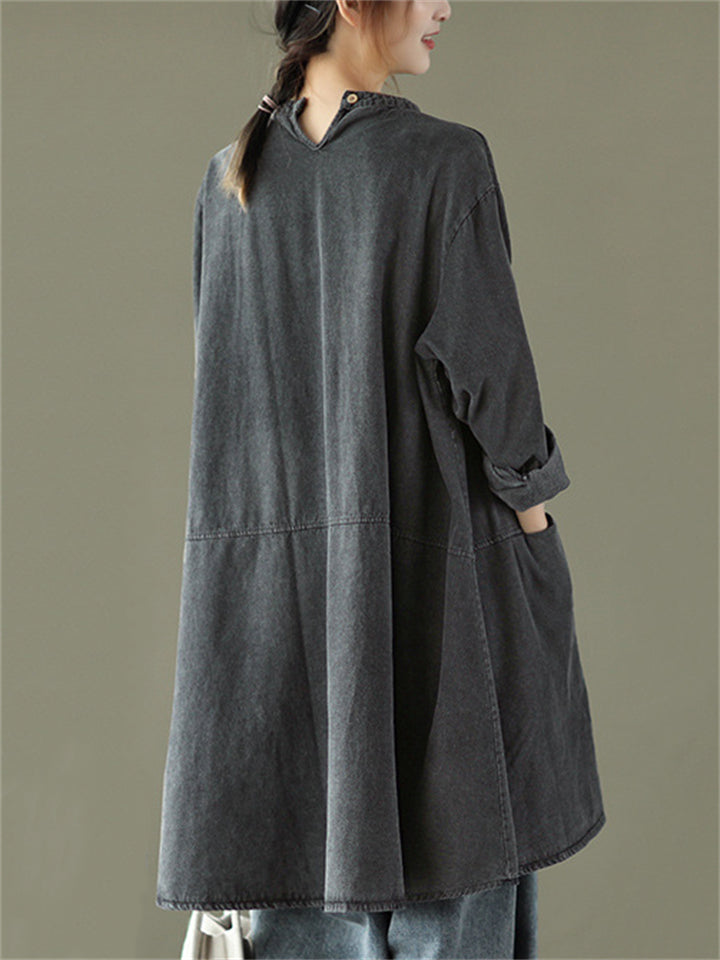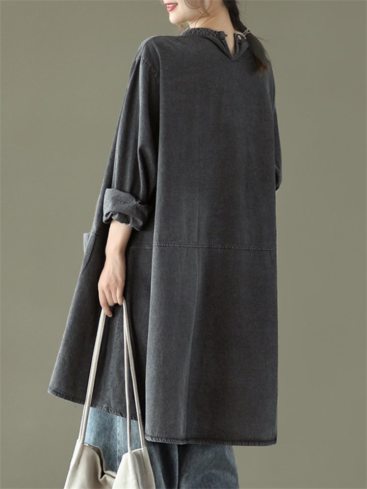Women's Retro Patchwork Mid-length Denim Shirt
