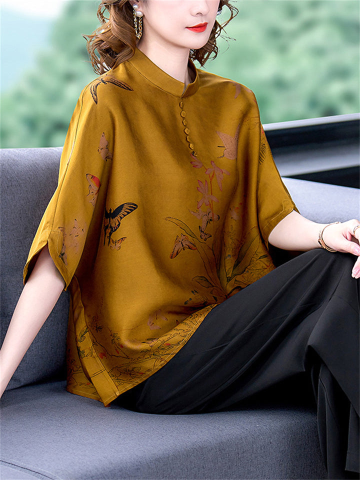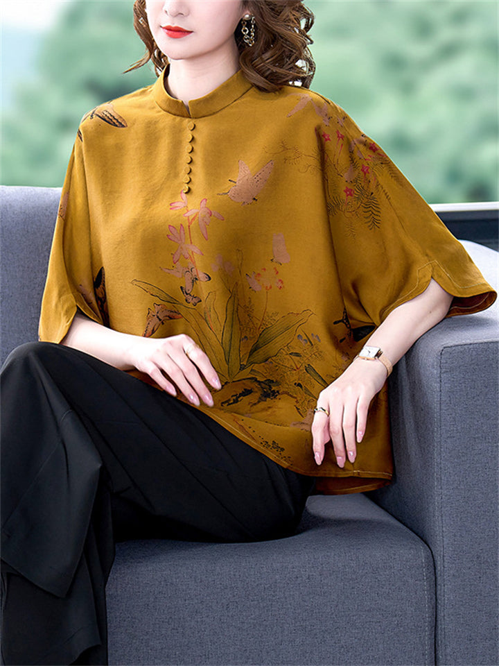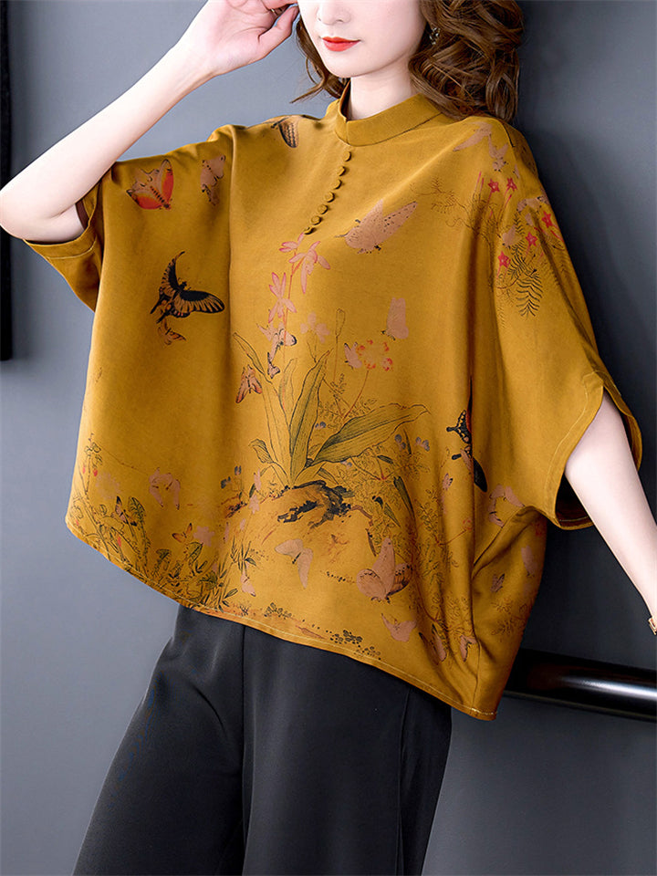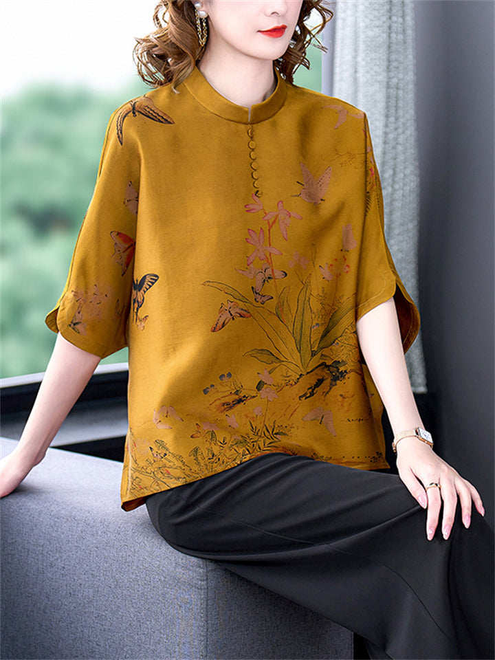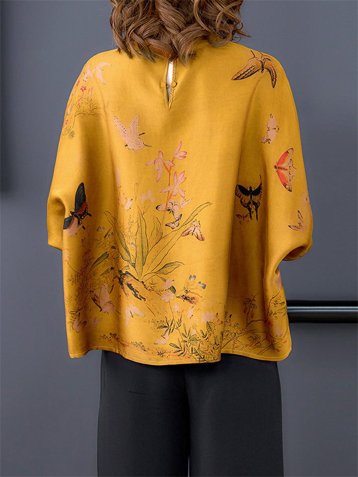 Women's Retro Temperament Wildflower Butterfly Print Shirt