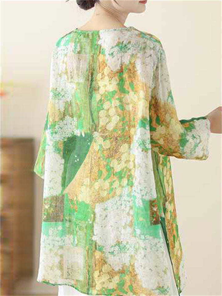 Summer Bohemian Style V Neck Print Vacation Shirt for Women