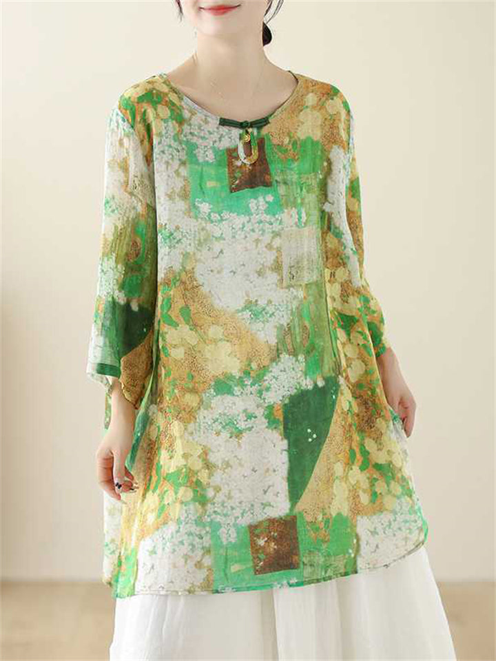 Women's Casual Retro Printed Long Sleeve Lapel Shirts