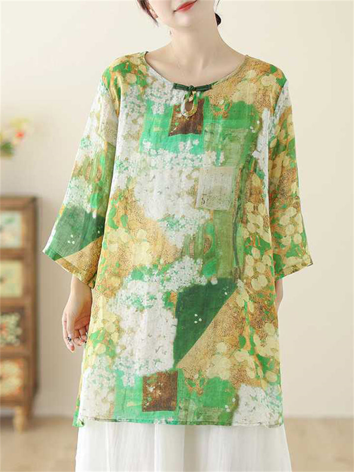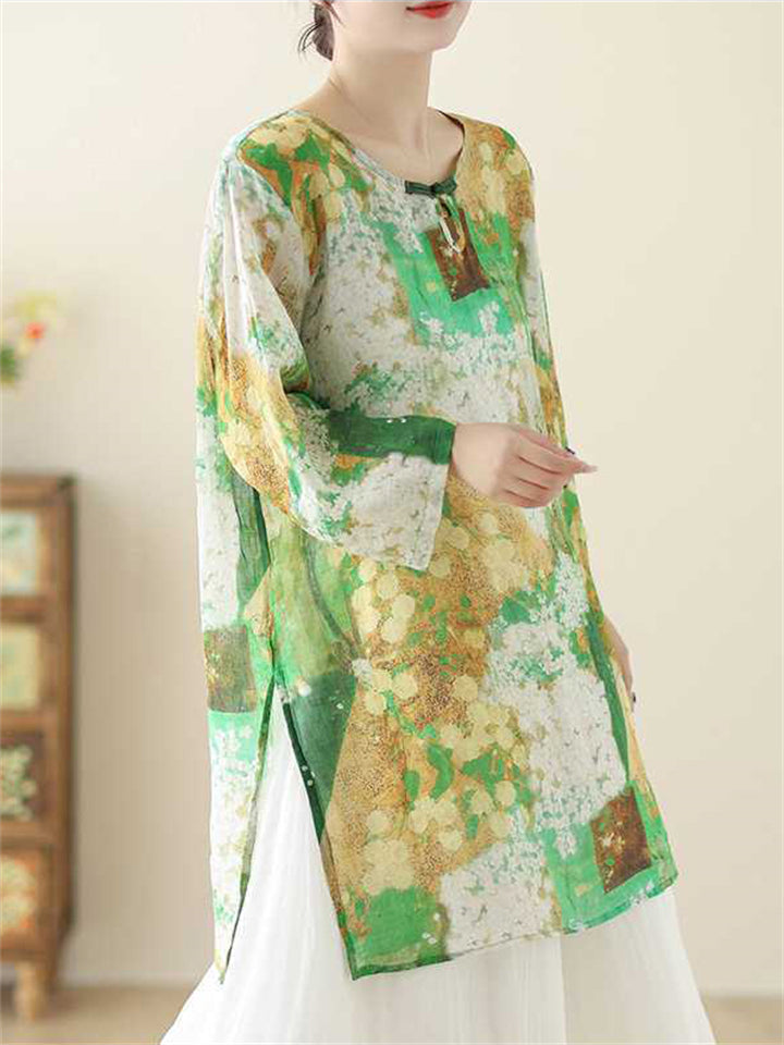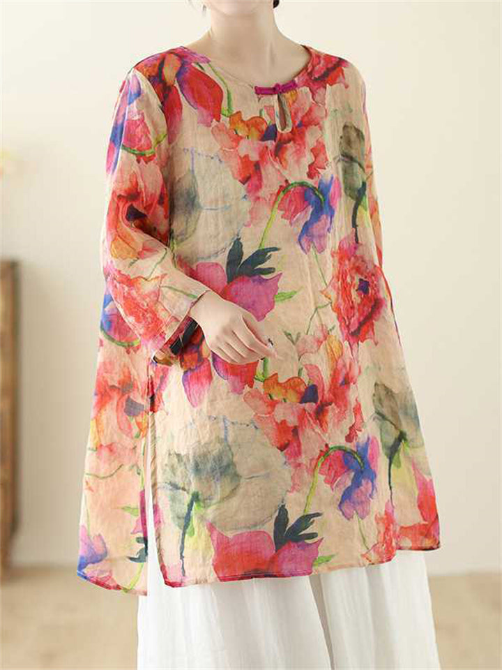 Ancient Chinese Style Floral Embroidery Linen Shirt for Women