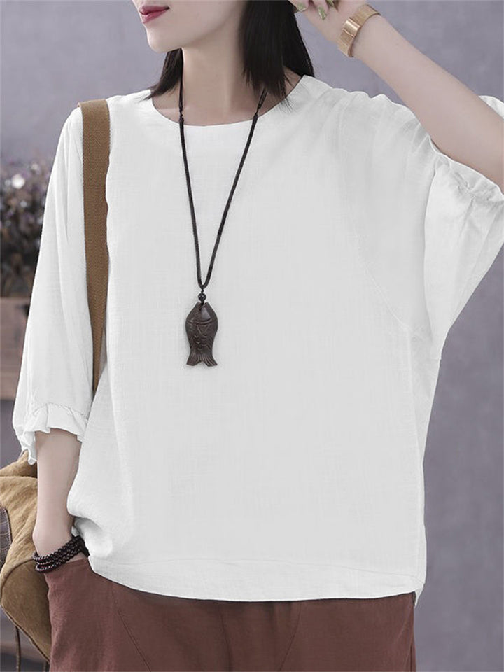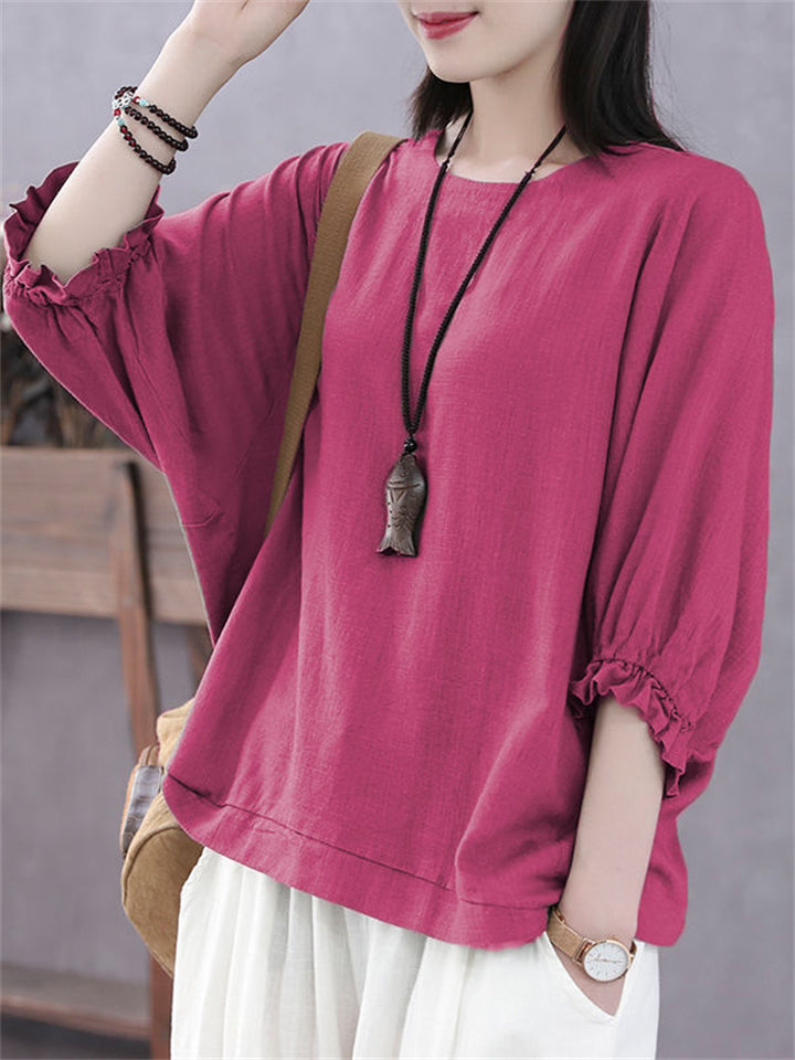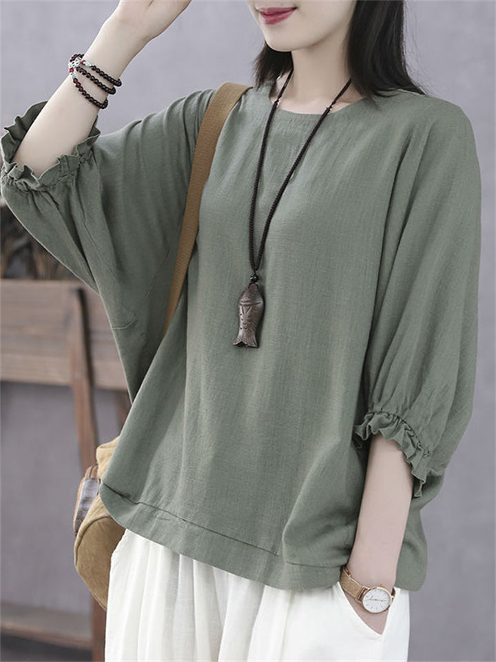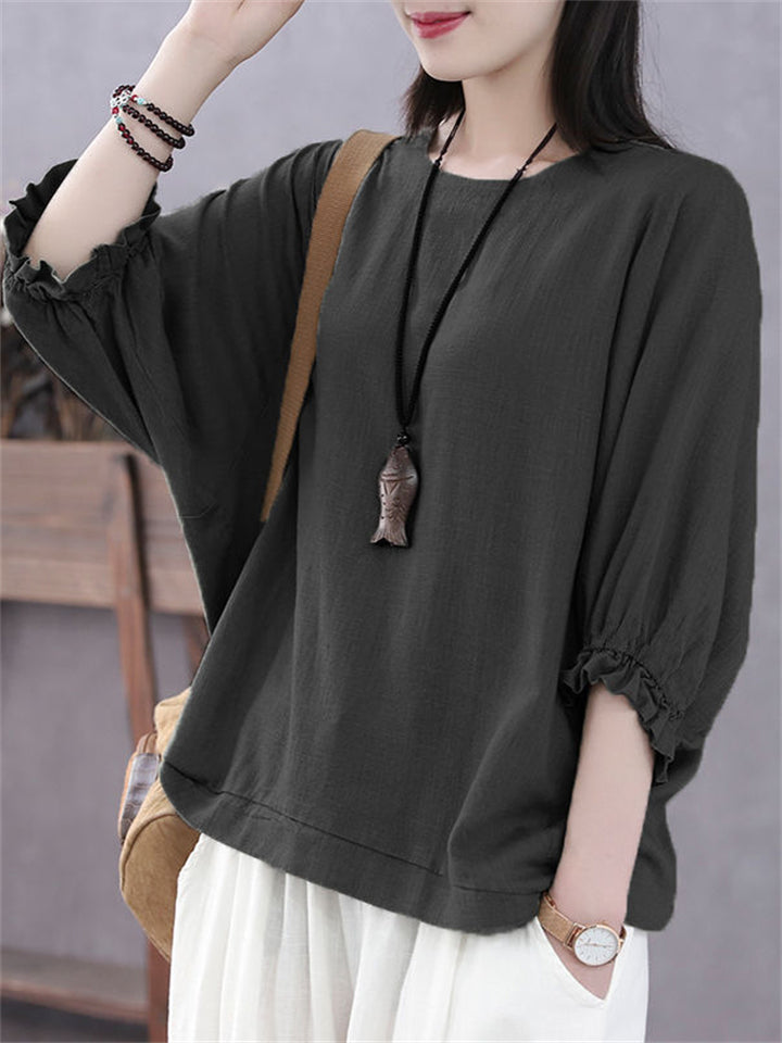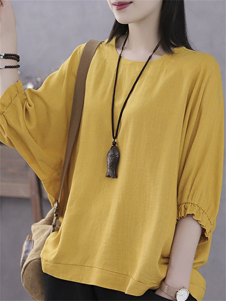 Women's Simple Oversized Crew Neck Batwing Sleeve Shirt