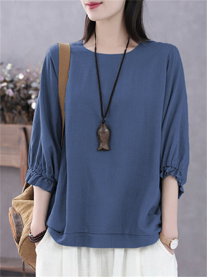 Women's Casual Solid Color 3/4 Sleeve Button Up Lapel Long Shirts