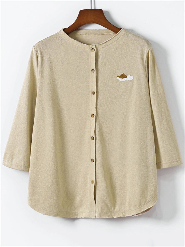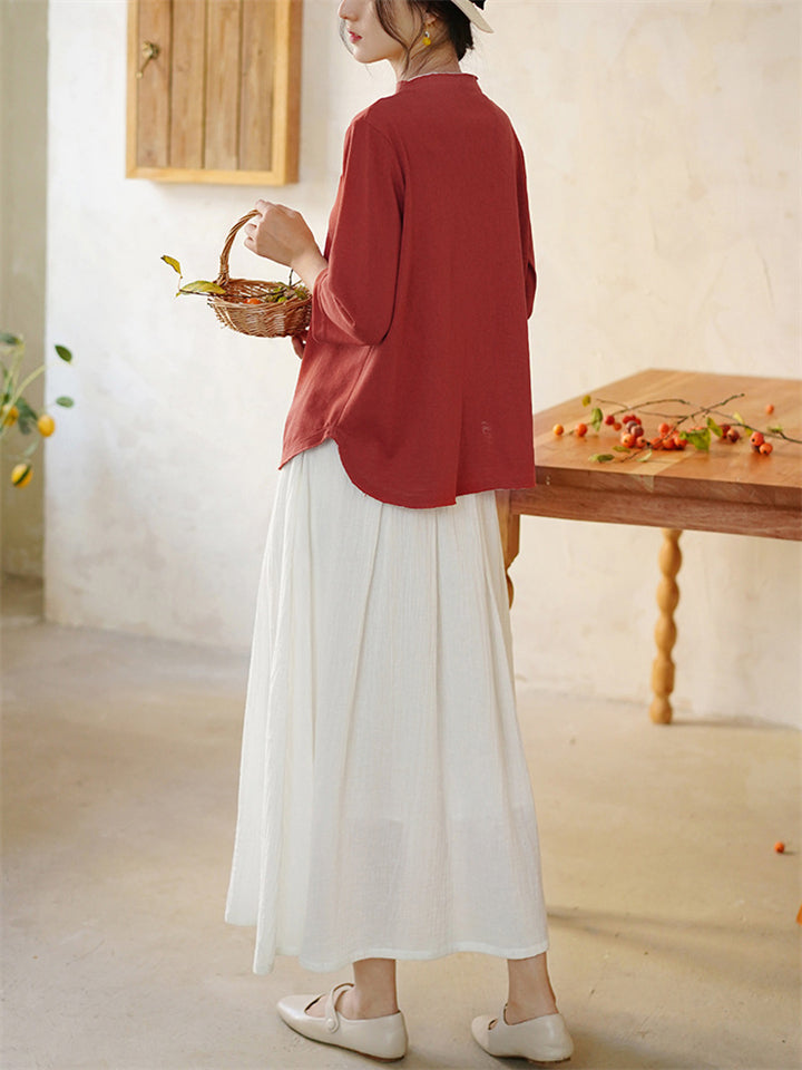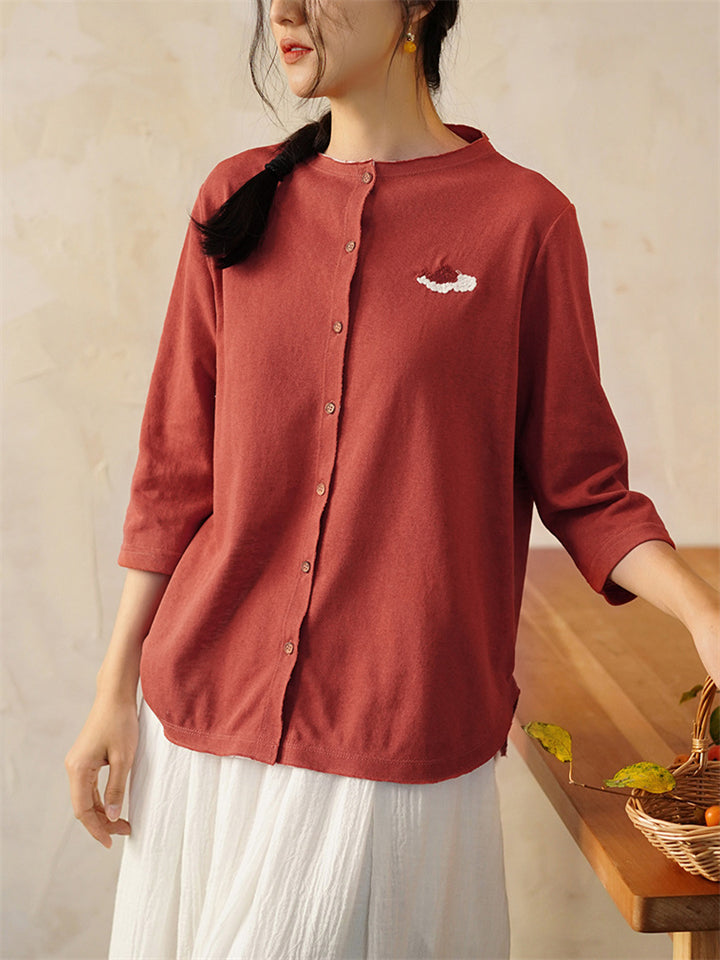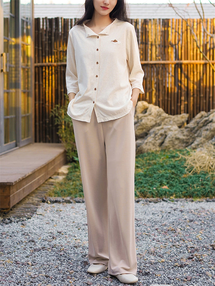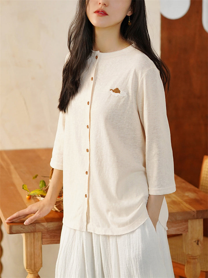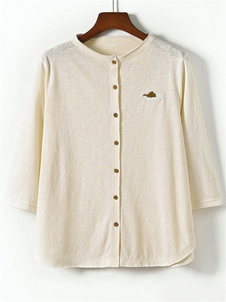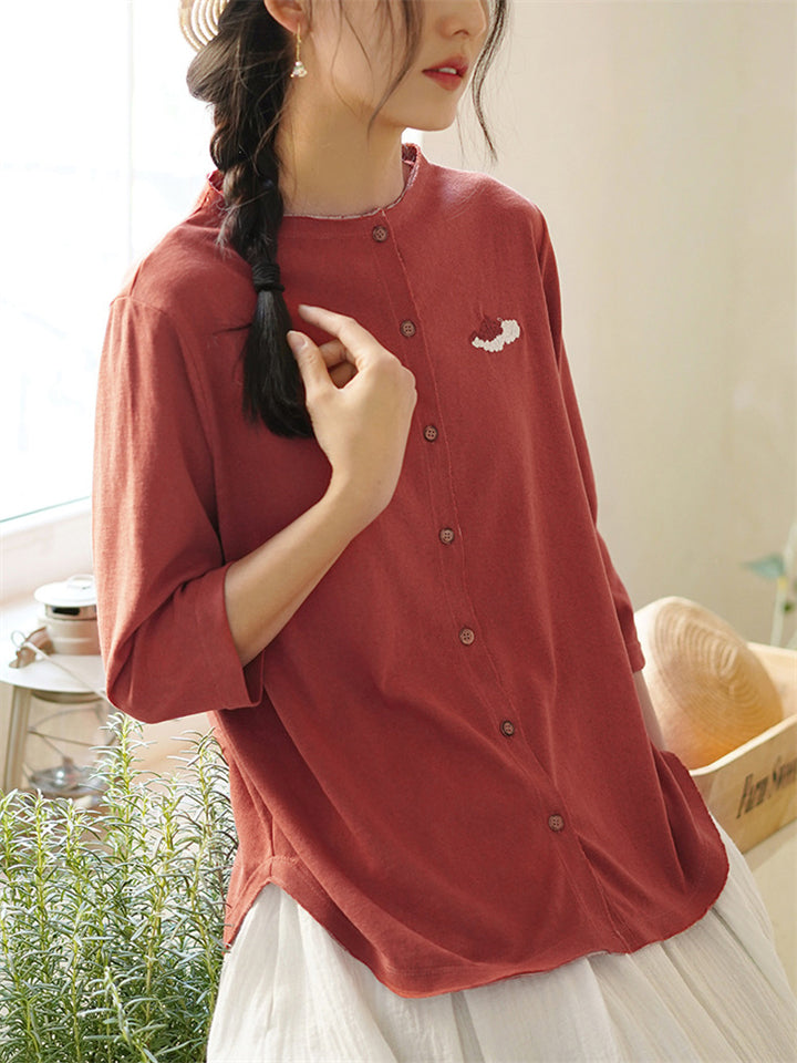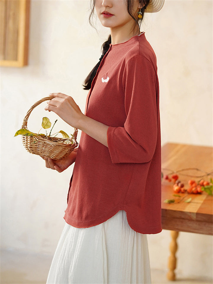 Ancient Chinese Style Floral Embroidery Linen Shirt for Women