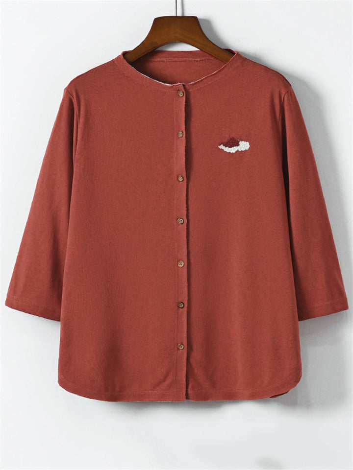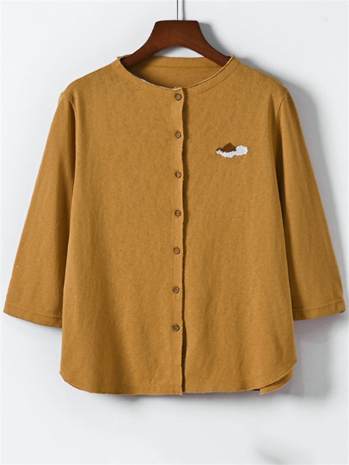 Women's Retro Casual Solid Color Button Up Lapel Cardigan Shirts