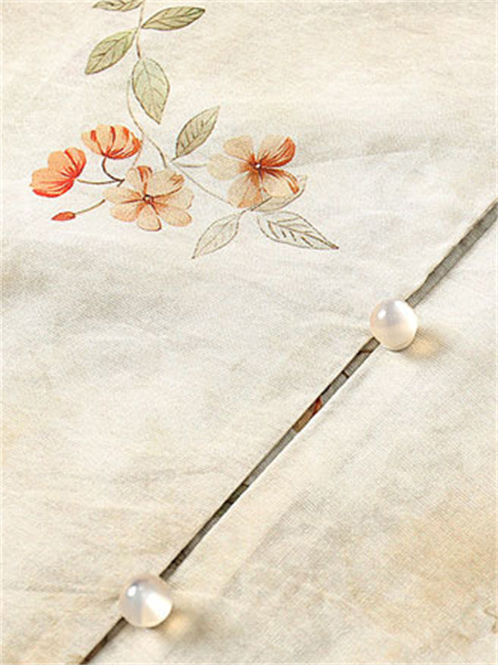 Ancient Chinese Style Floral Embroidery Linen Shirt for Women