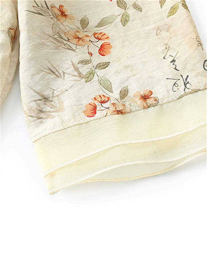 Women's Spring Blossoms Hanzi Print Chiffon Shirt