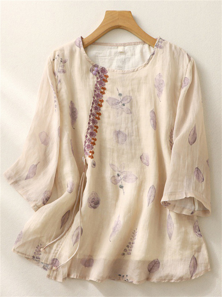 Women's Summer Casual Floral Print Embroidery 3/4 Sleeve Shirt