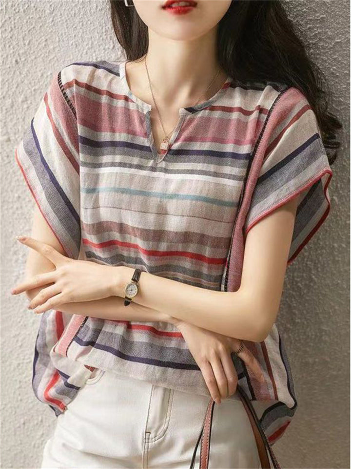 Women's Summer Casual V Neck Stripe Shirts
