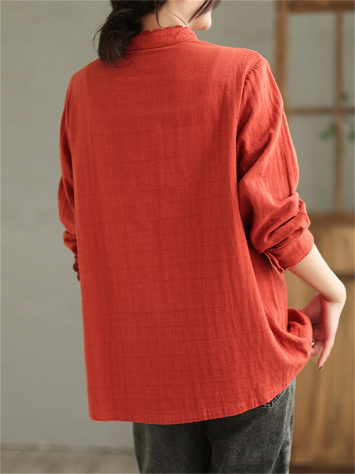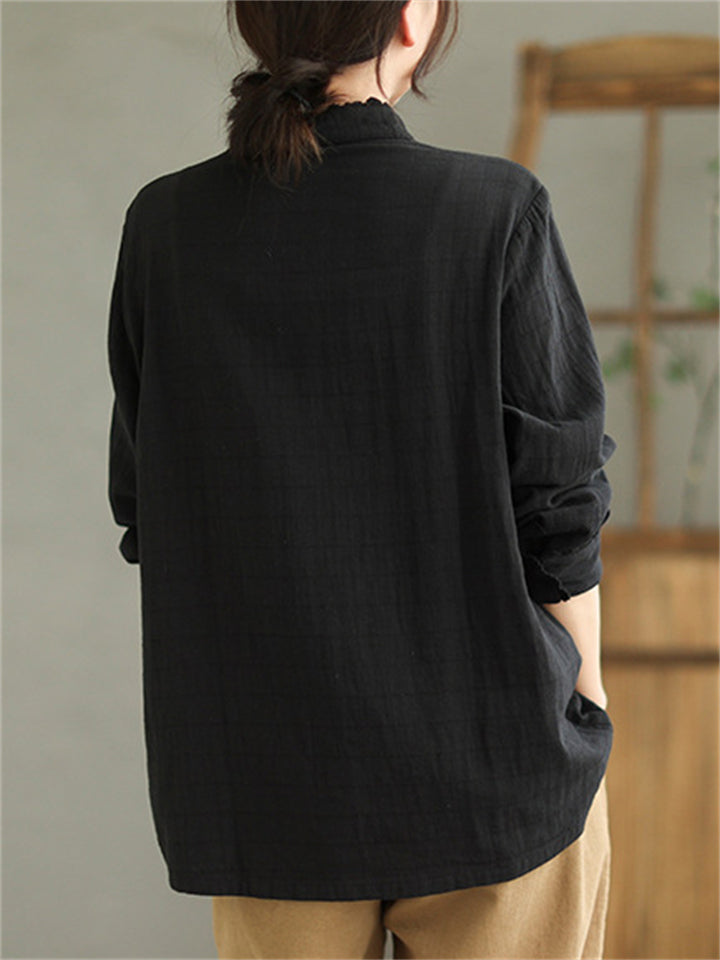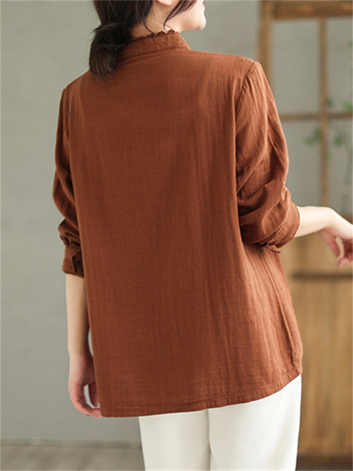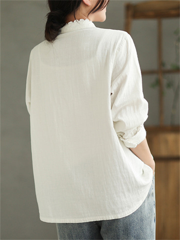 Ancient Chinese Style Floral Embroidery Linen Shirt for Women