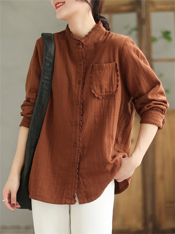 Women's Retro Casual Solid Color Button Up Lapel Cardigan Shirts