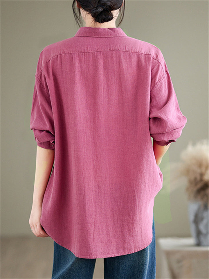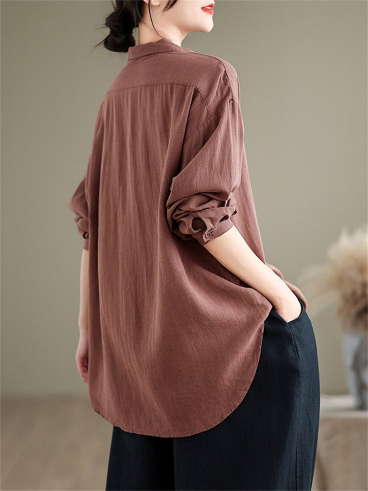 Women's Retro Casual Solid Color Button Up Lapel Cardigan Shirts