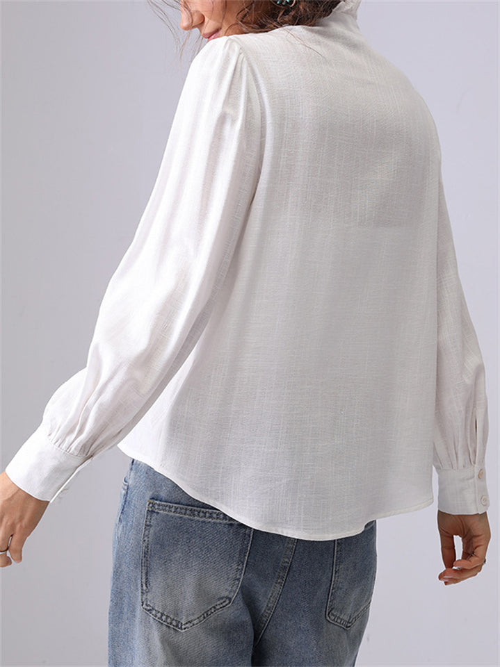 Ancient Chinese Style Floral Embroidery Linen Shirt for Women