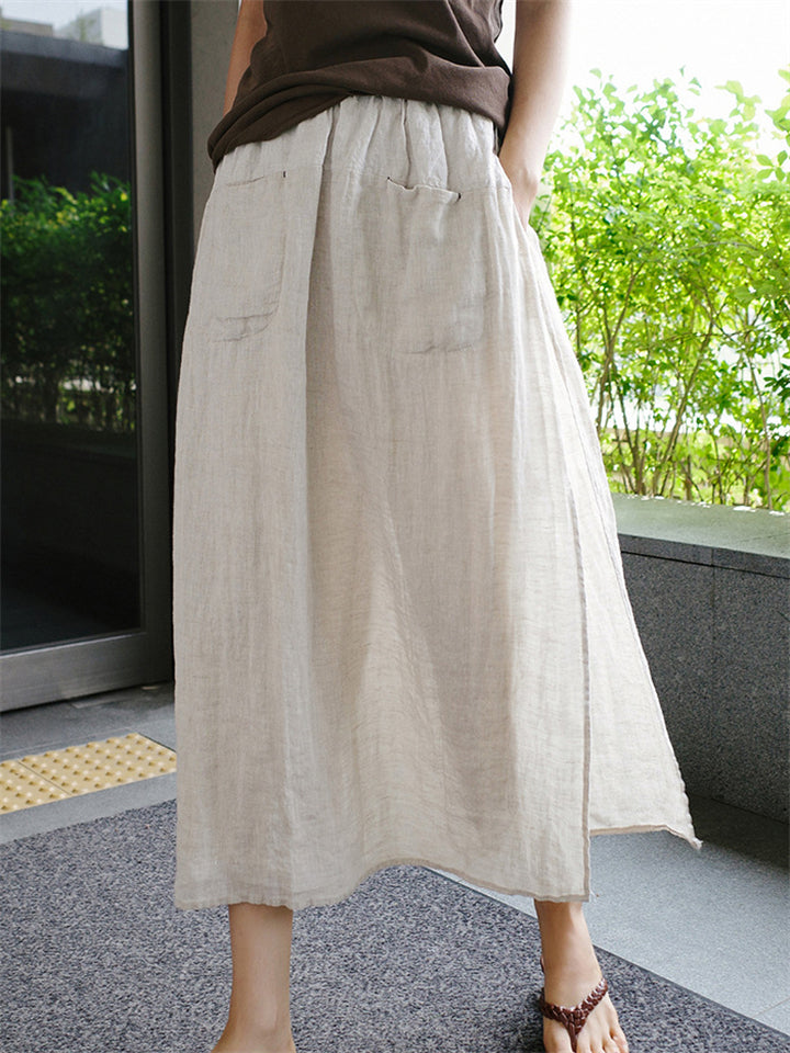 Women's Loose Solid Color Patchwork Asymmetric Skirt