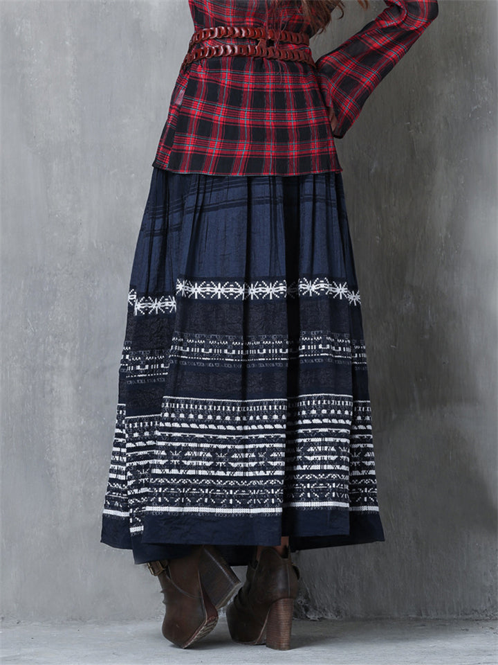 Women's Ethnic Style Contrast Color High Rise Skirts