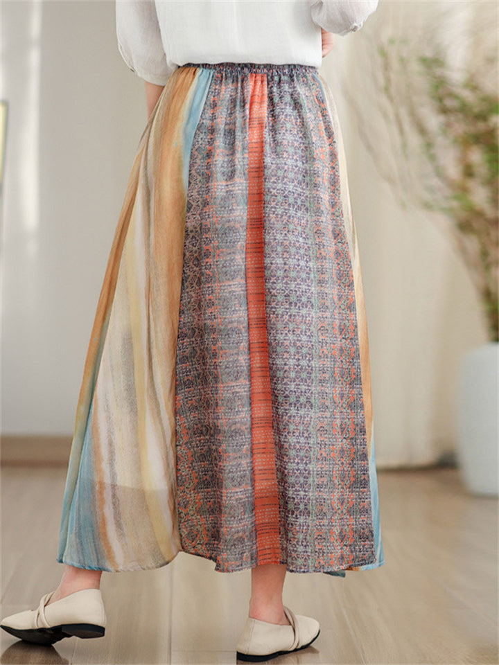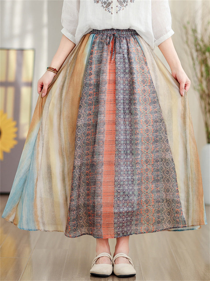 Women's Ethnic Style Contrast Color High Rise Skirts