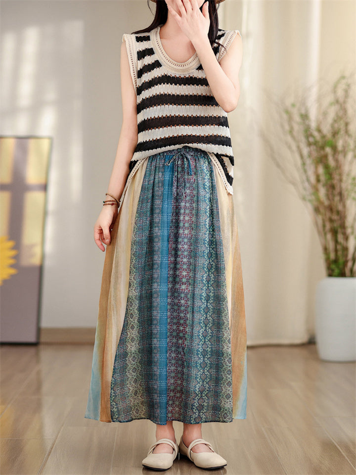 Women's Fashion Patchwork Elastic Tie-waist Skirts