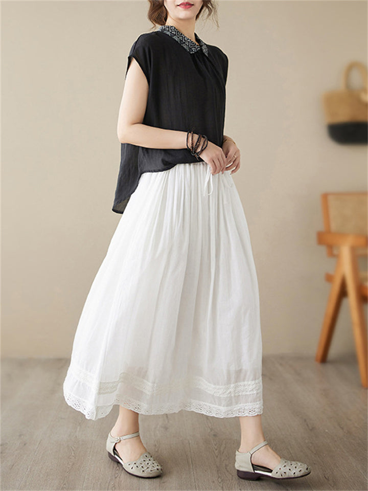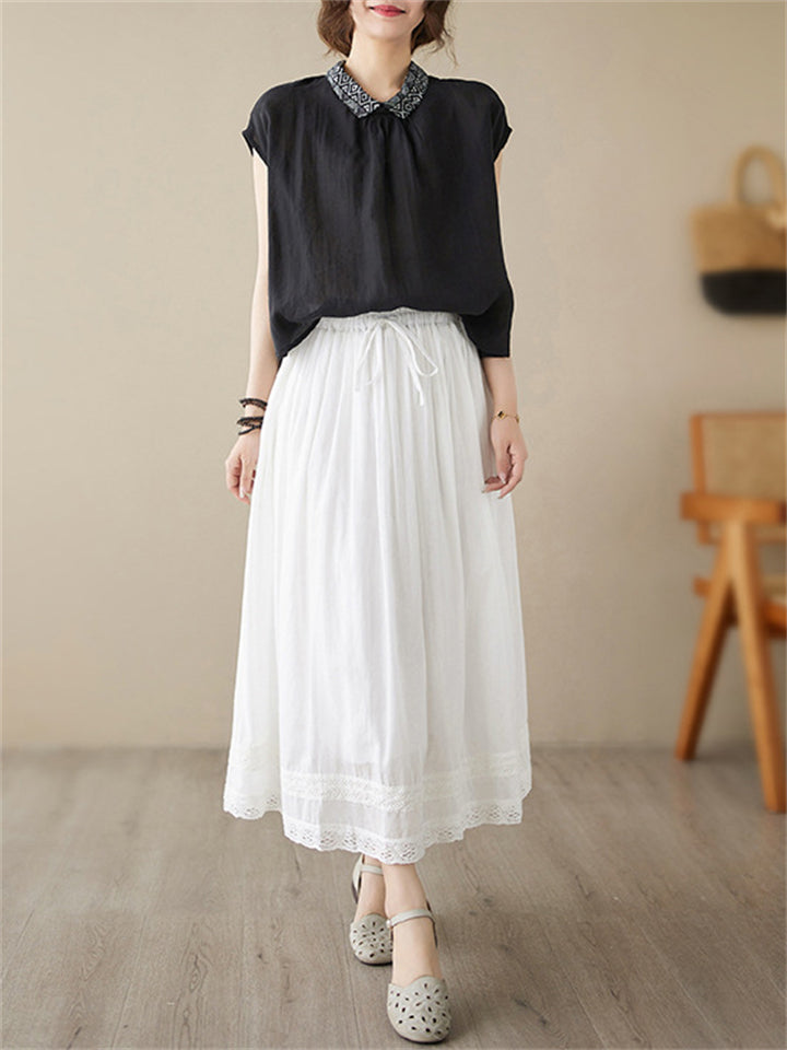 Retro Embroidery Mesh Elastic Waist Skirts for Women