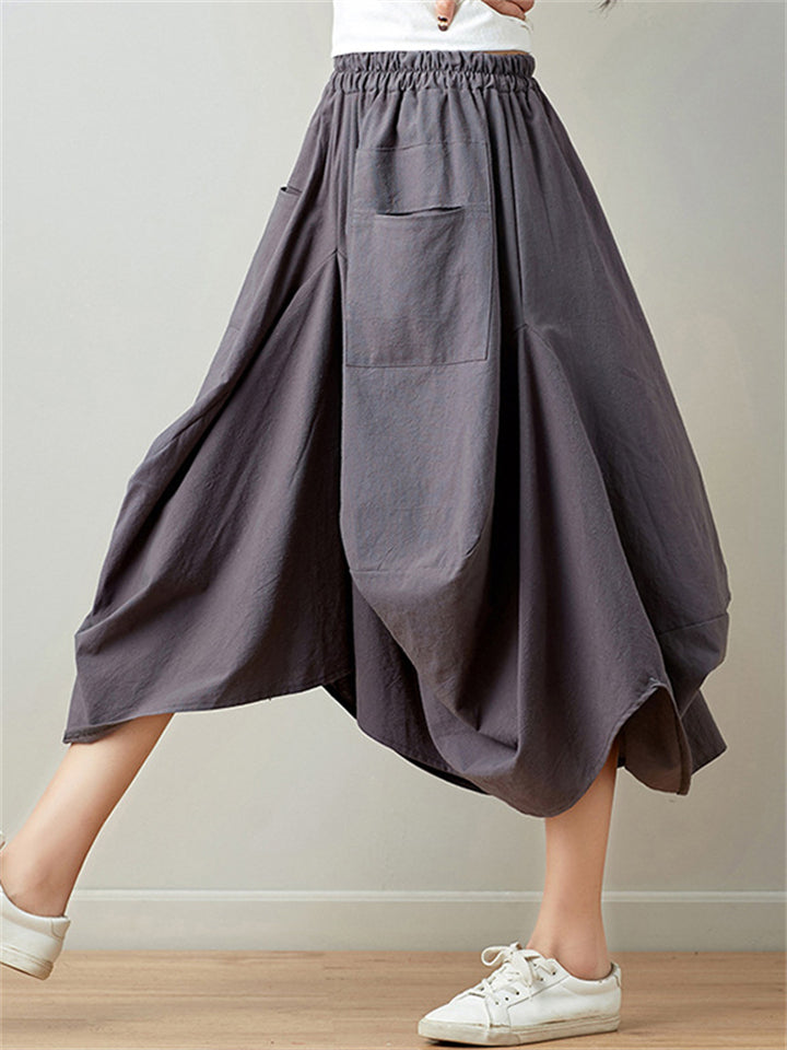 Women's Loose Solid Color Patchwork Asymmetric Skirt