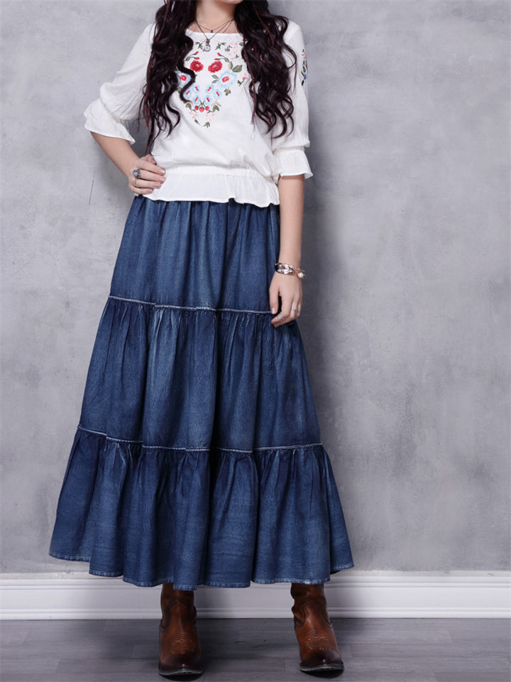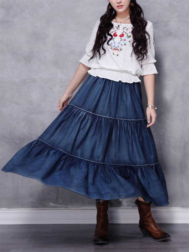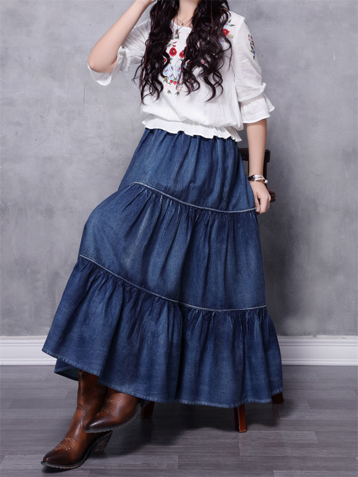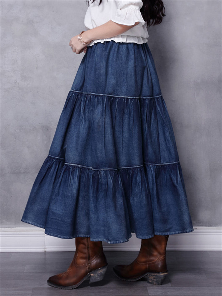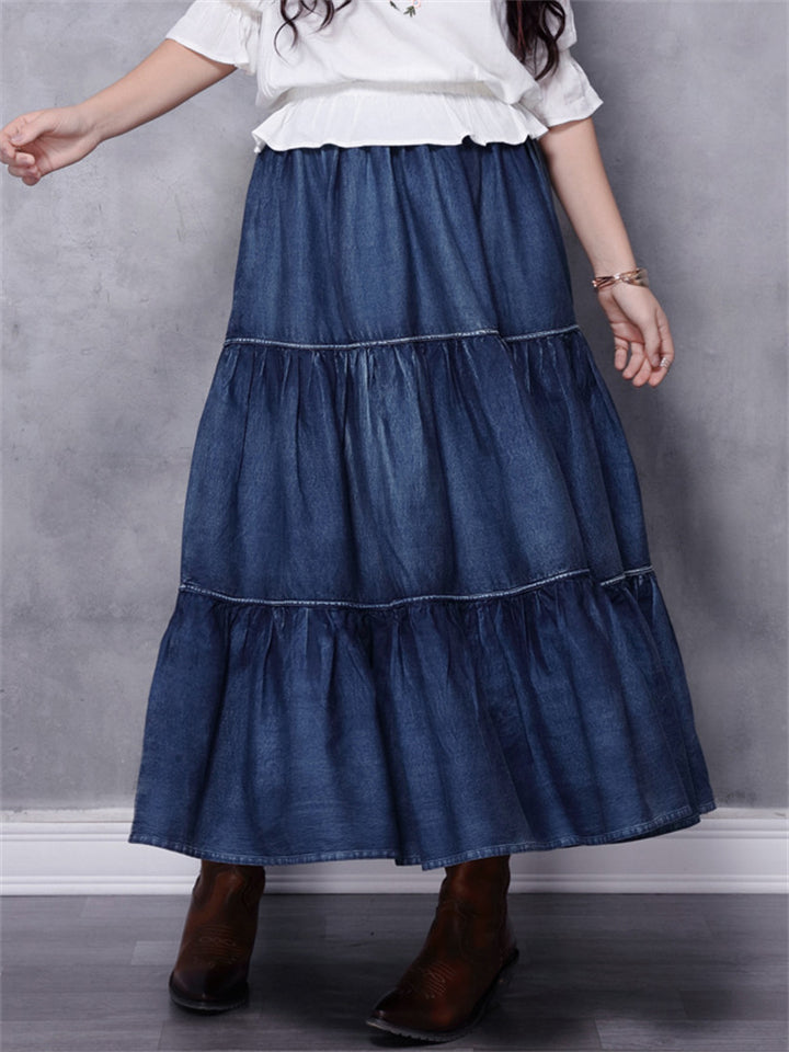 Summer Women's Elastic Waist Gradient Denim Skirts