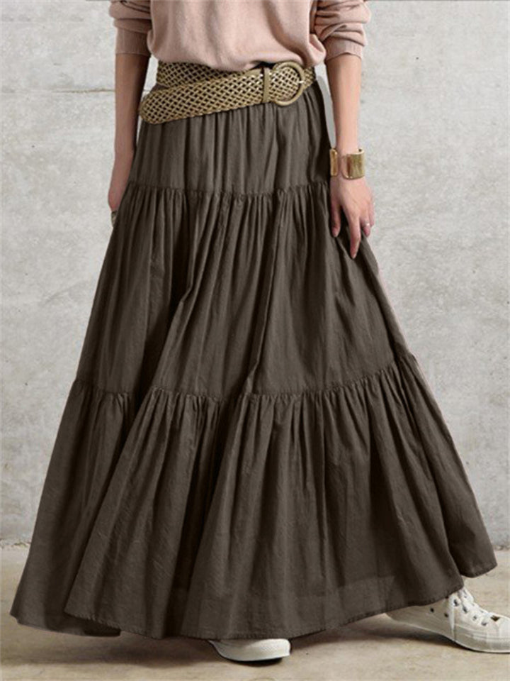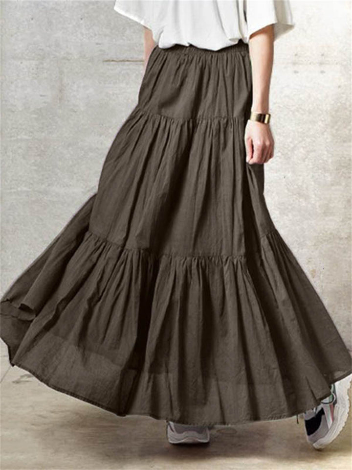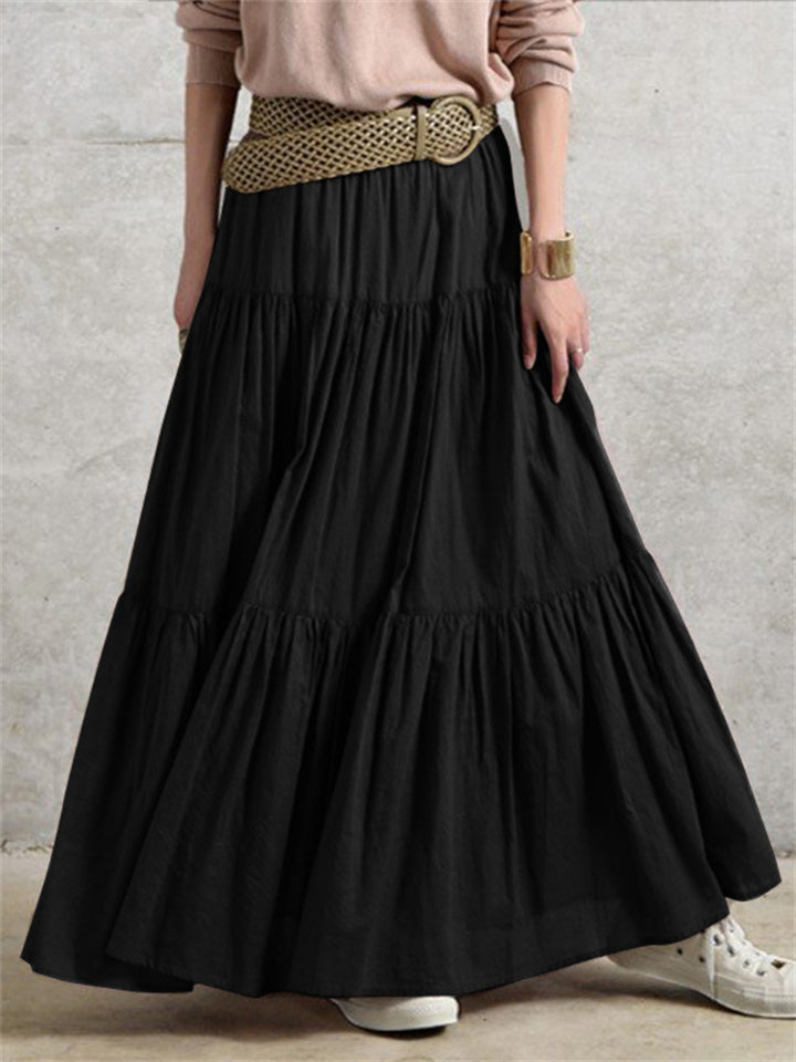 Women's Loose Solid Color Patchwork Asymmetric Skirt