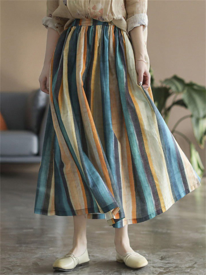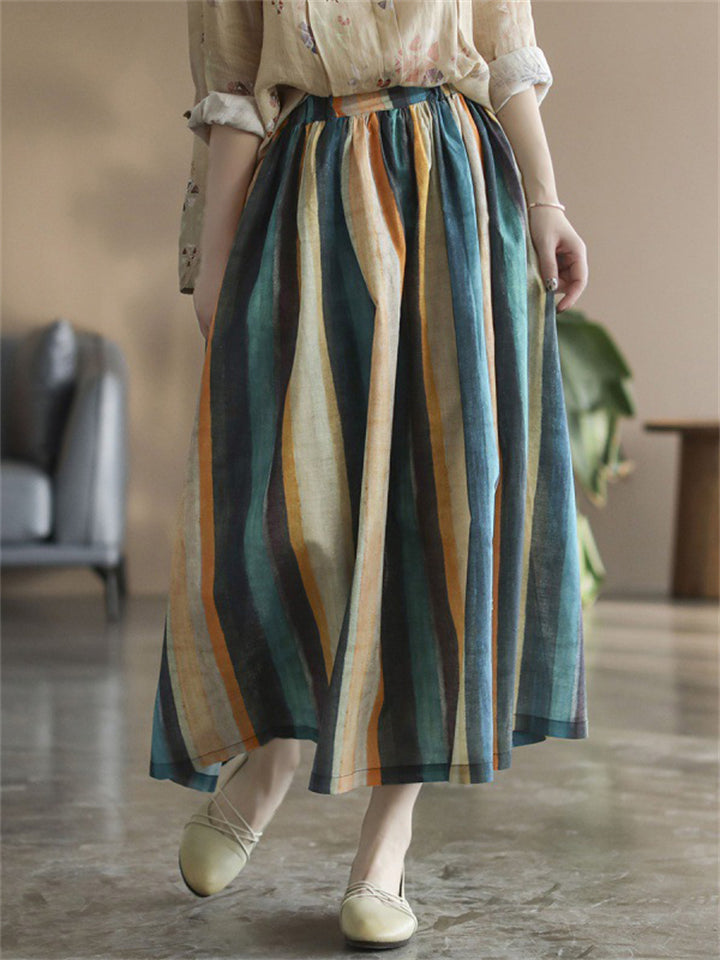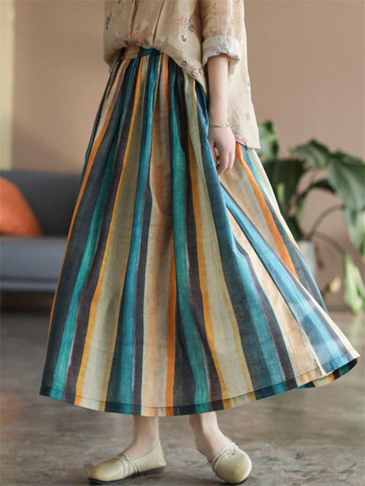 Women's Ethnic Style Contrast Color High Rise Skirts