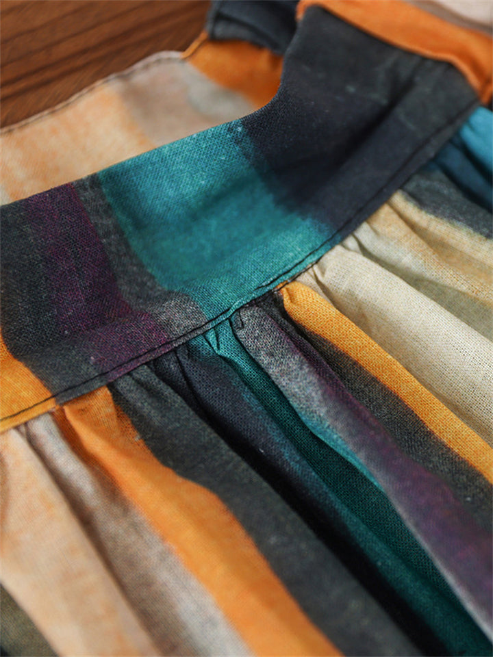 Summer Holiday Contrast Color Stripe Swing Skirt for Women