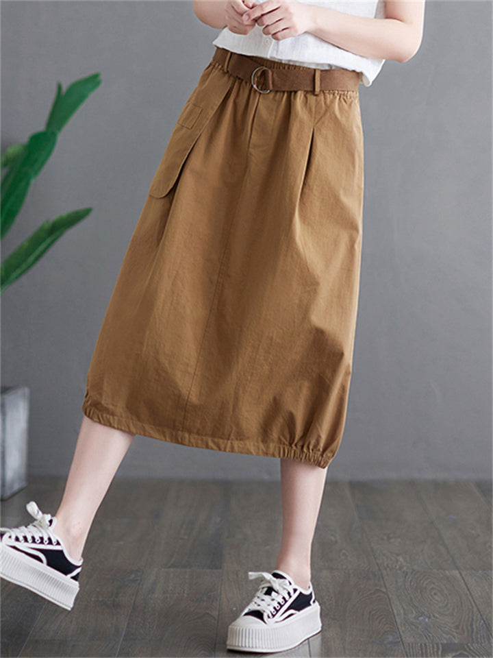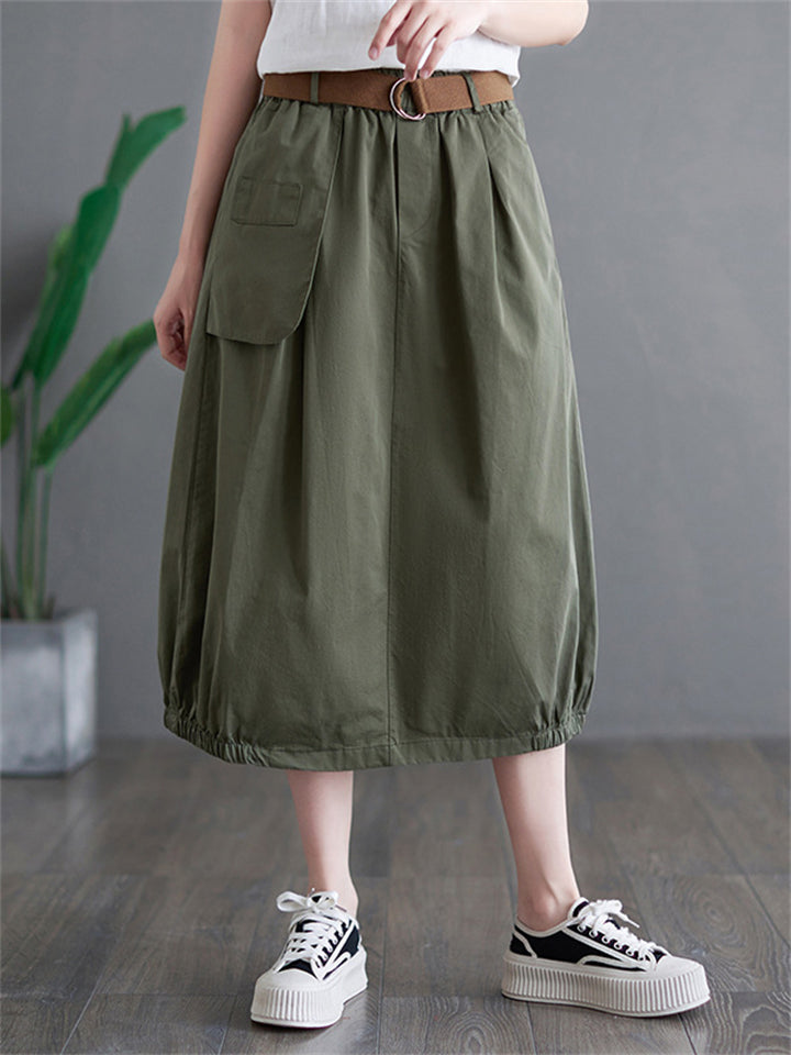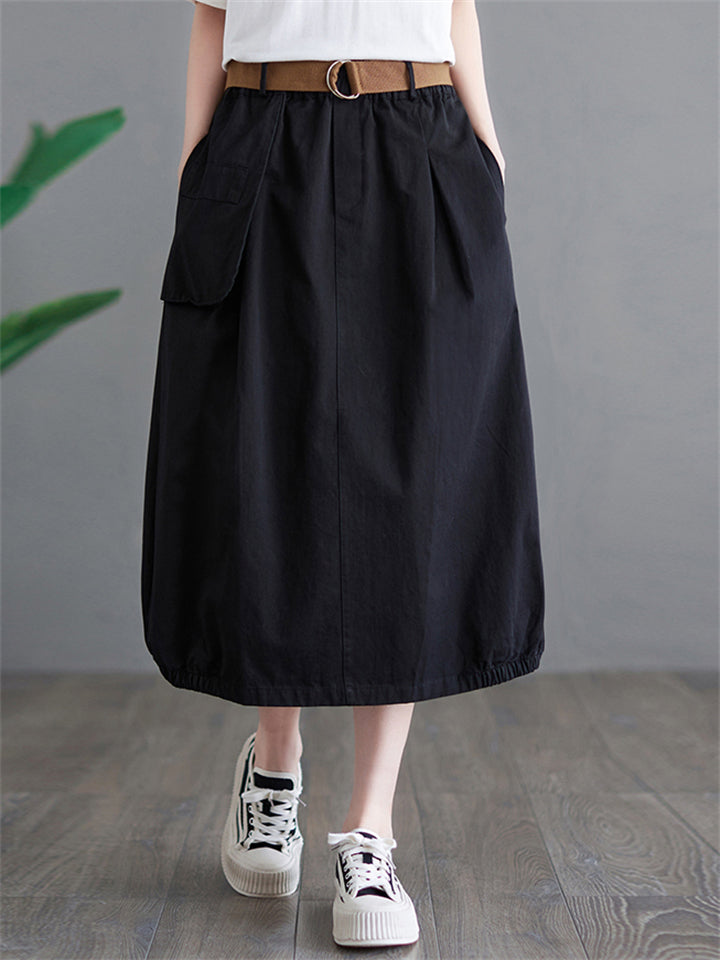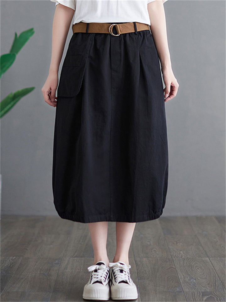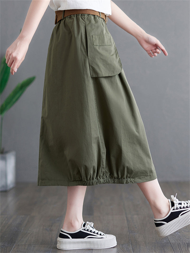 Women's Loose Solid Color Patchwork Asymmetric Skirt