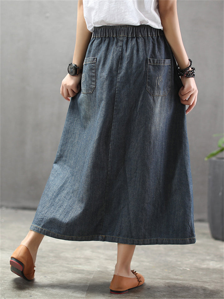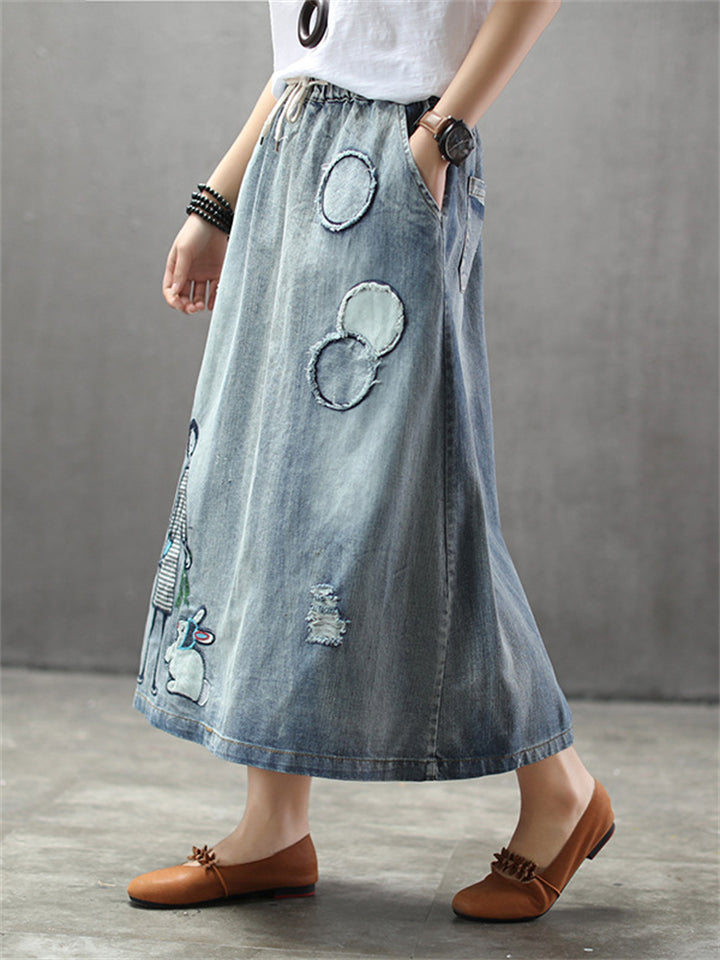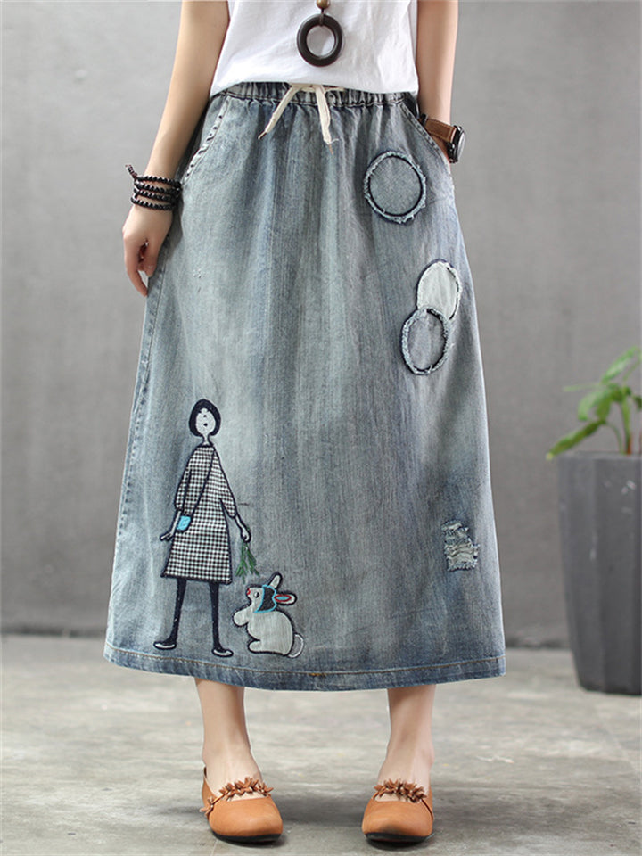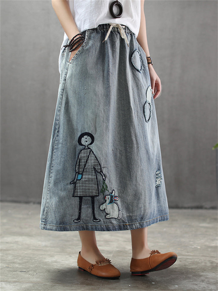 Japanese Style A-Line Patchwork Denim Skirts for Women
