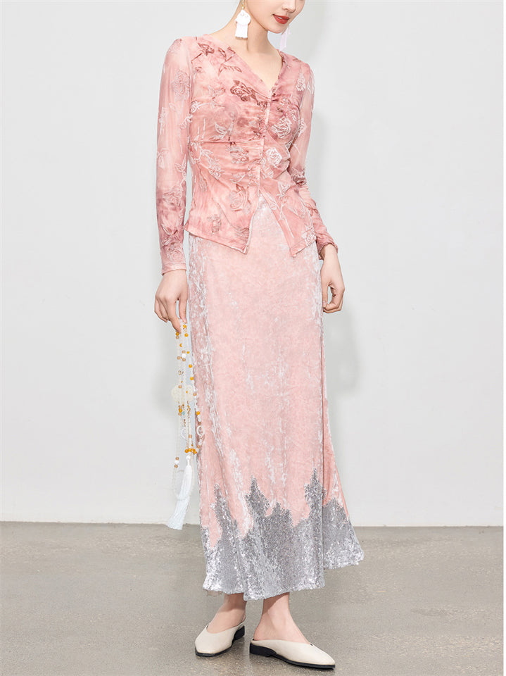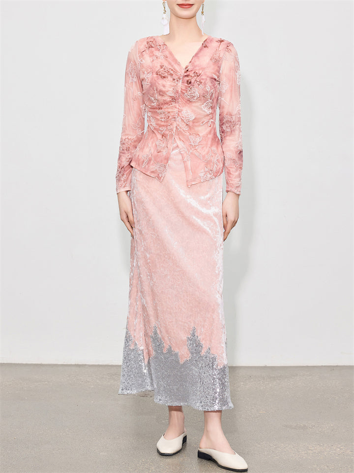 Retro Embroidery Mesh Elastic Waist Skirts for Women