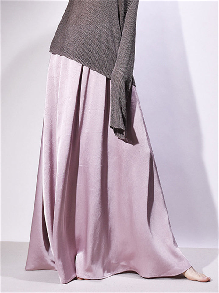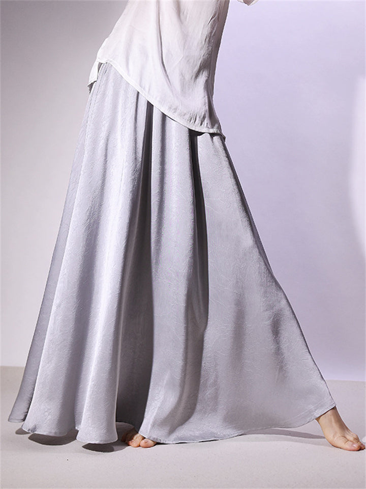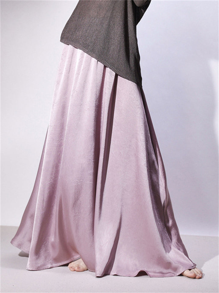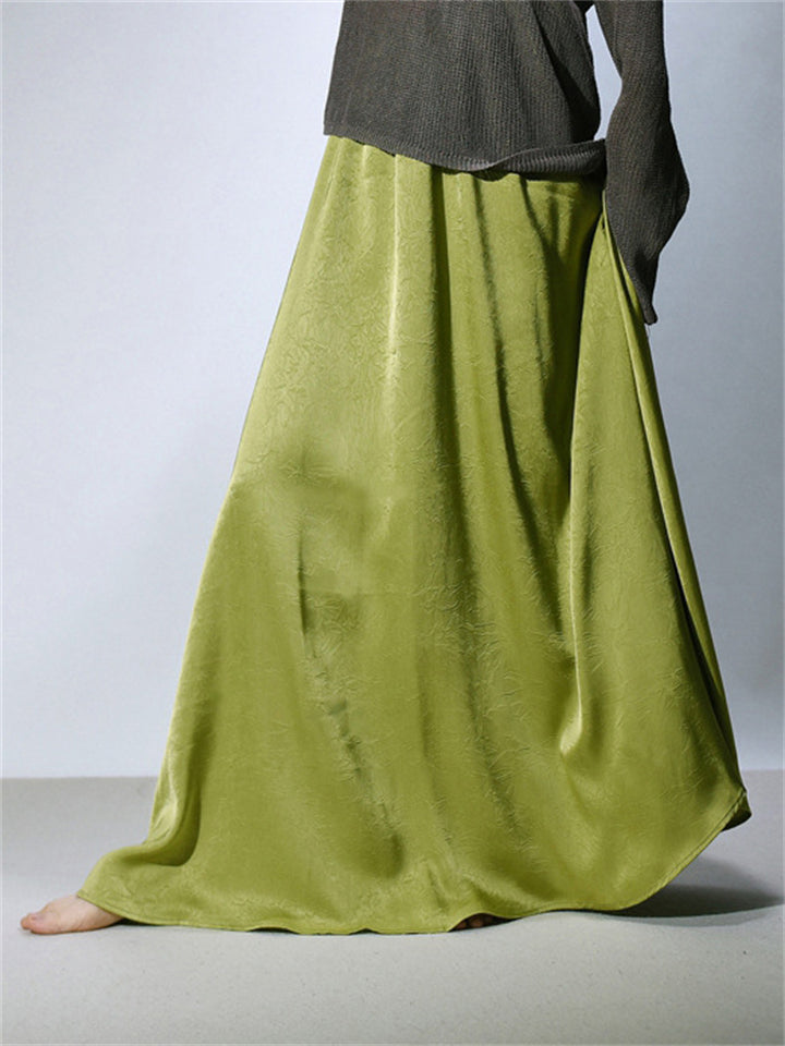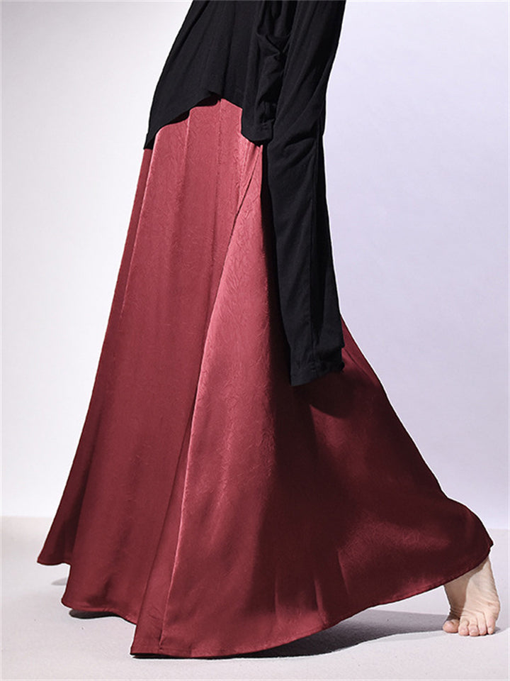 Women's Comfy Solid Color Big Hem A-Line Satin Skirt