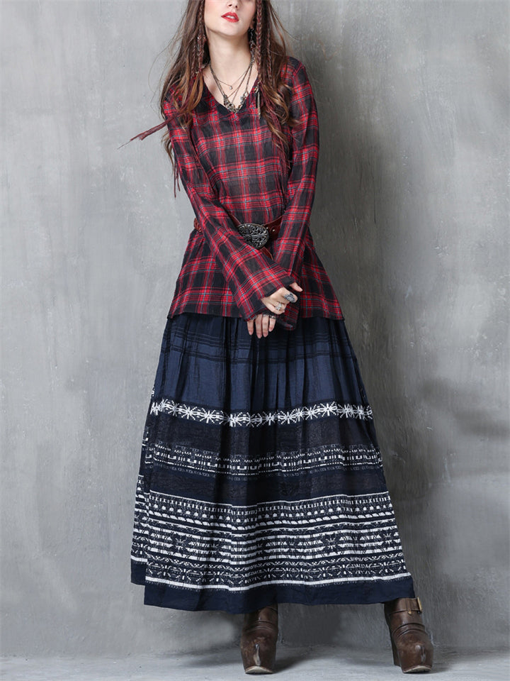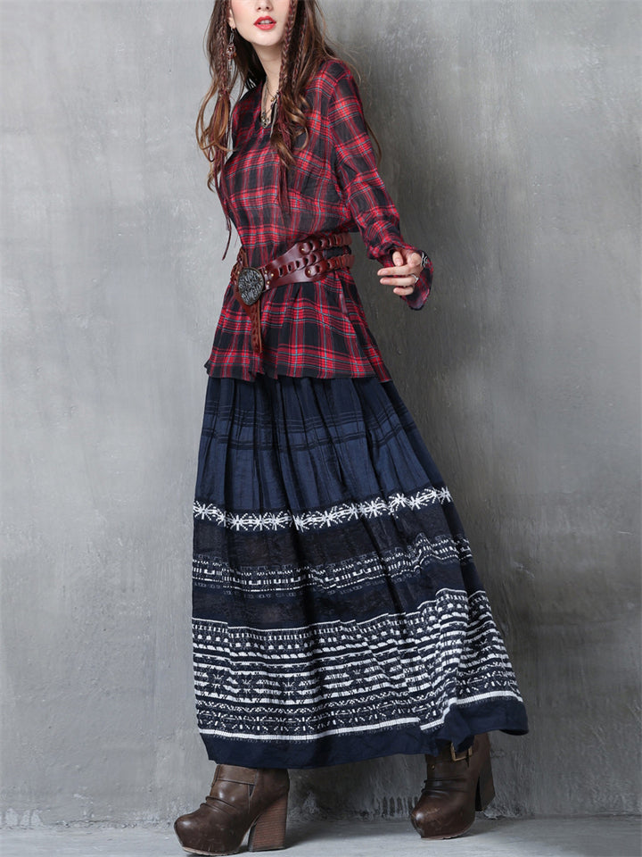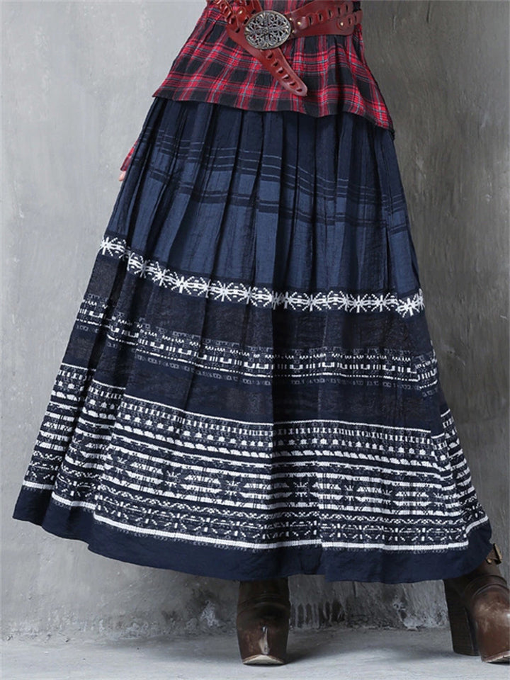 Women's Ethnic Style Contrast Color High Rise Skirts