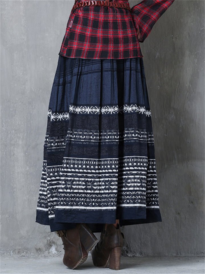 Women's Dark Blue Casual Embroidery Ankle-length Skirts