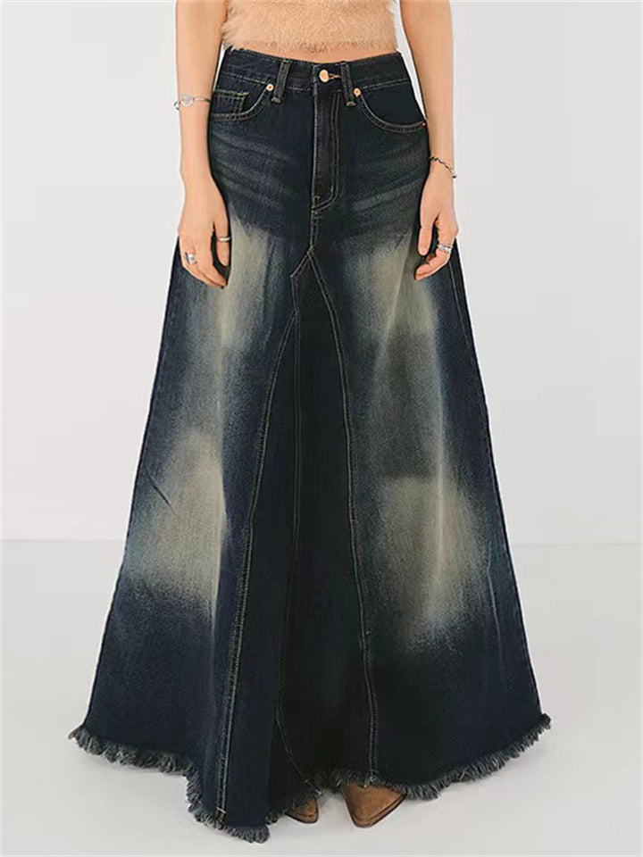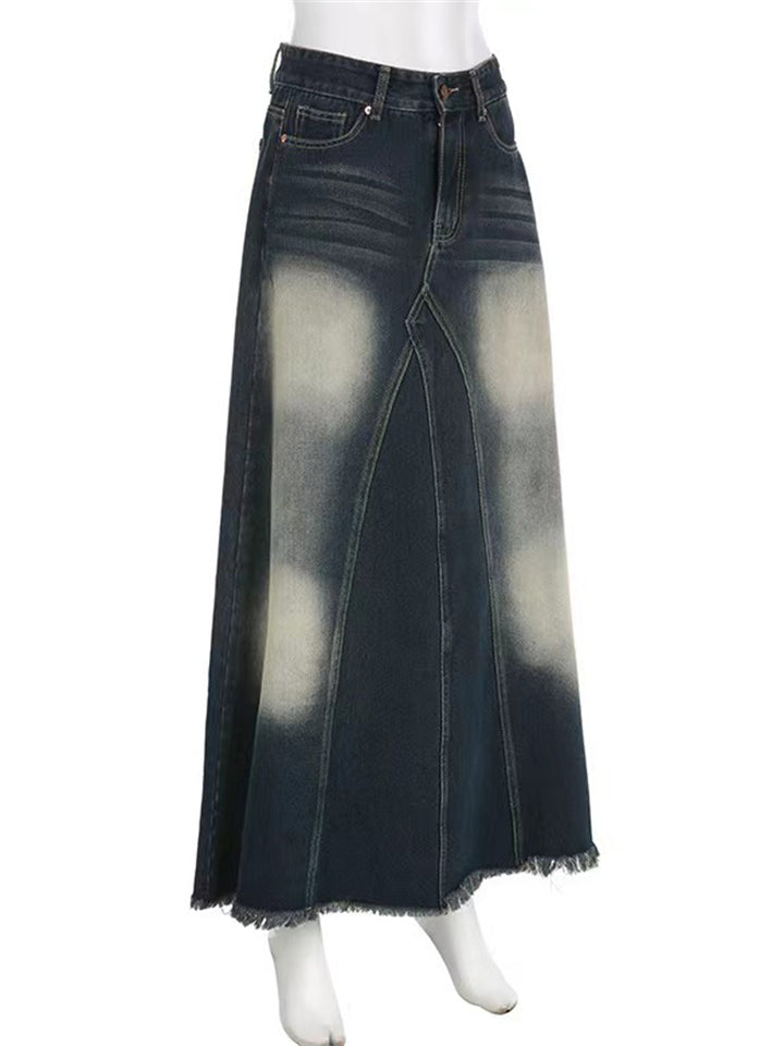 Japanese Style A-Line Patchwork Denim Skirts for Women